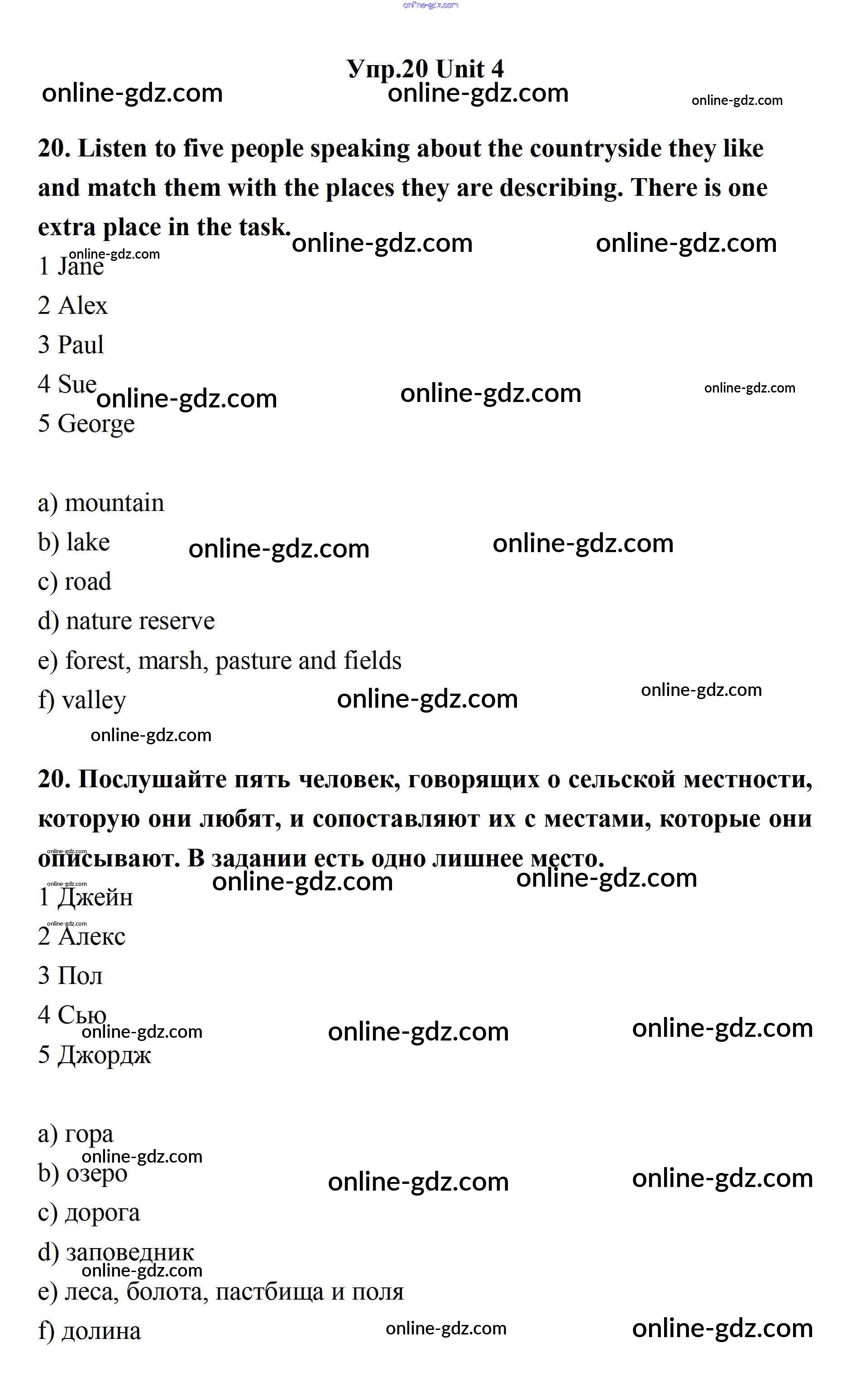 Готовые домашние задания по Английскому языку за 11 класс Учебник Биболетова, Бабушис Enjoy English 2017 - Unit 4. What Are Your Whereаbouts? 20