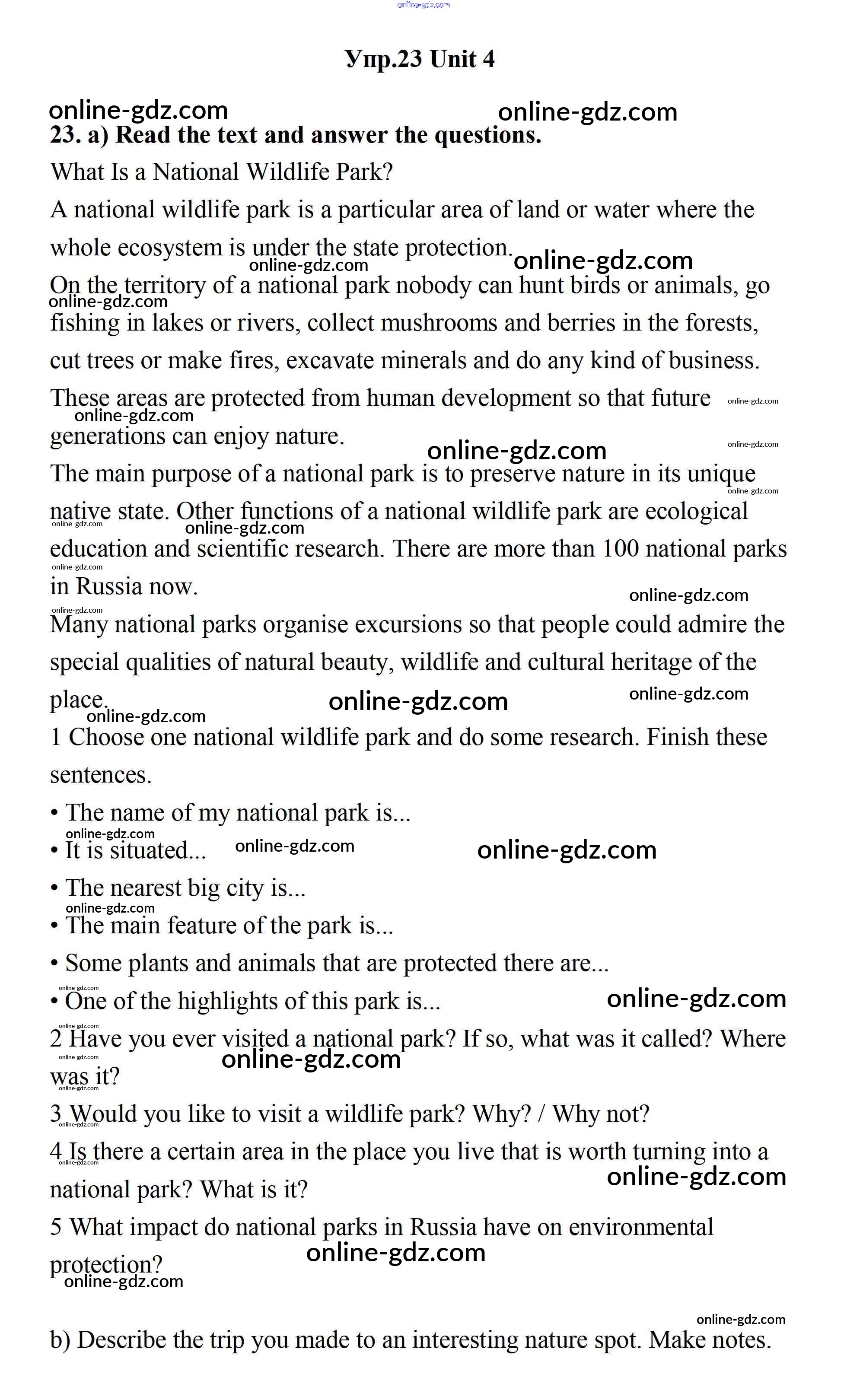Готовые домашние задания по Английскому языку за 11 класс Учебник Биболетова, Бабушис Enjoy English 2017 - Unit 4. What Are Your Whereаbouts? 23