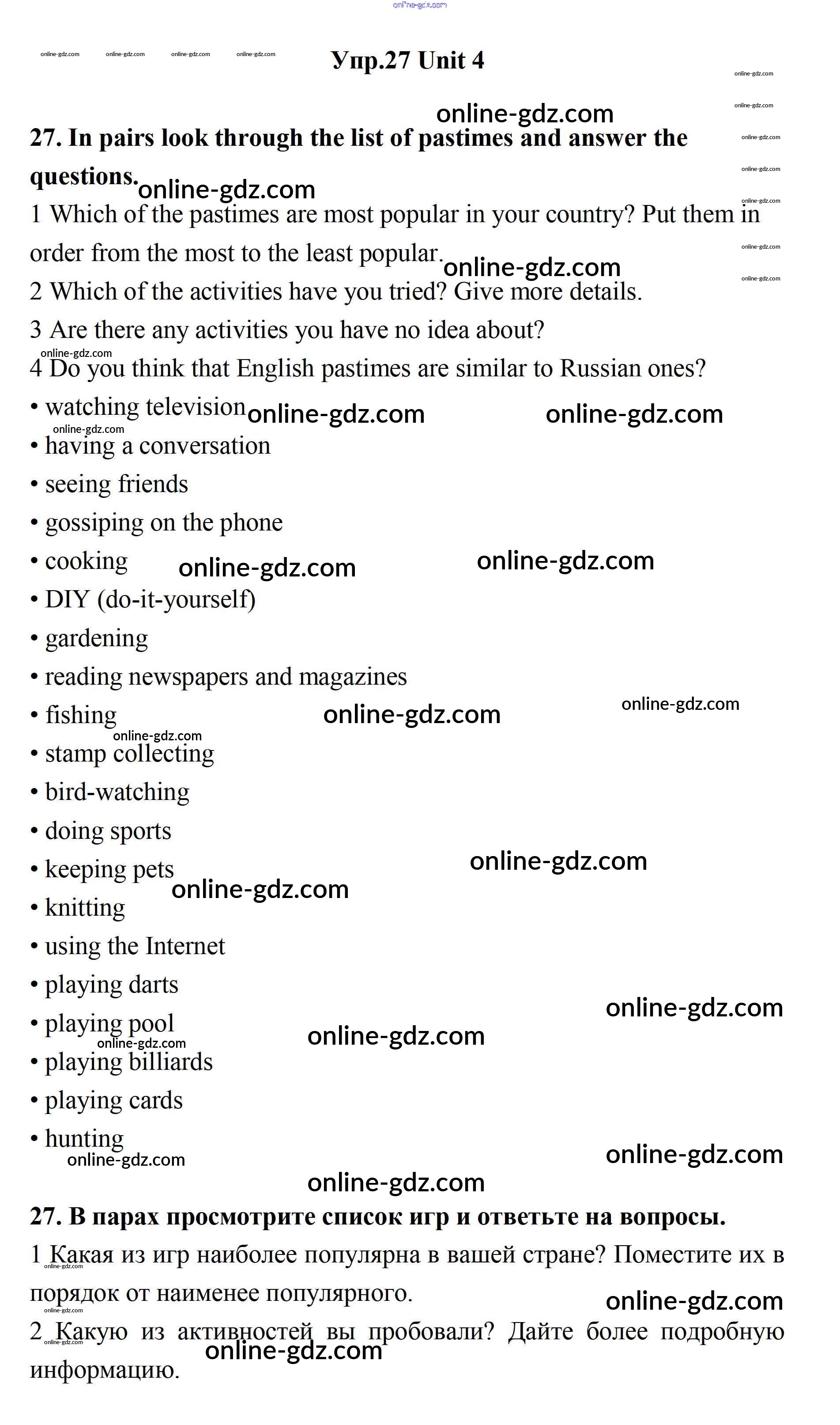 Готовые домашние задания по Английскому языку за 11 класс Учебник Биболетова, Бабушис Enjoy English 2017 - Unit 4. What Are Your Whereаbouts? 27