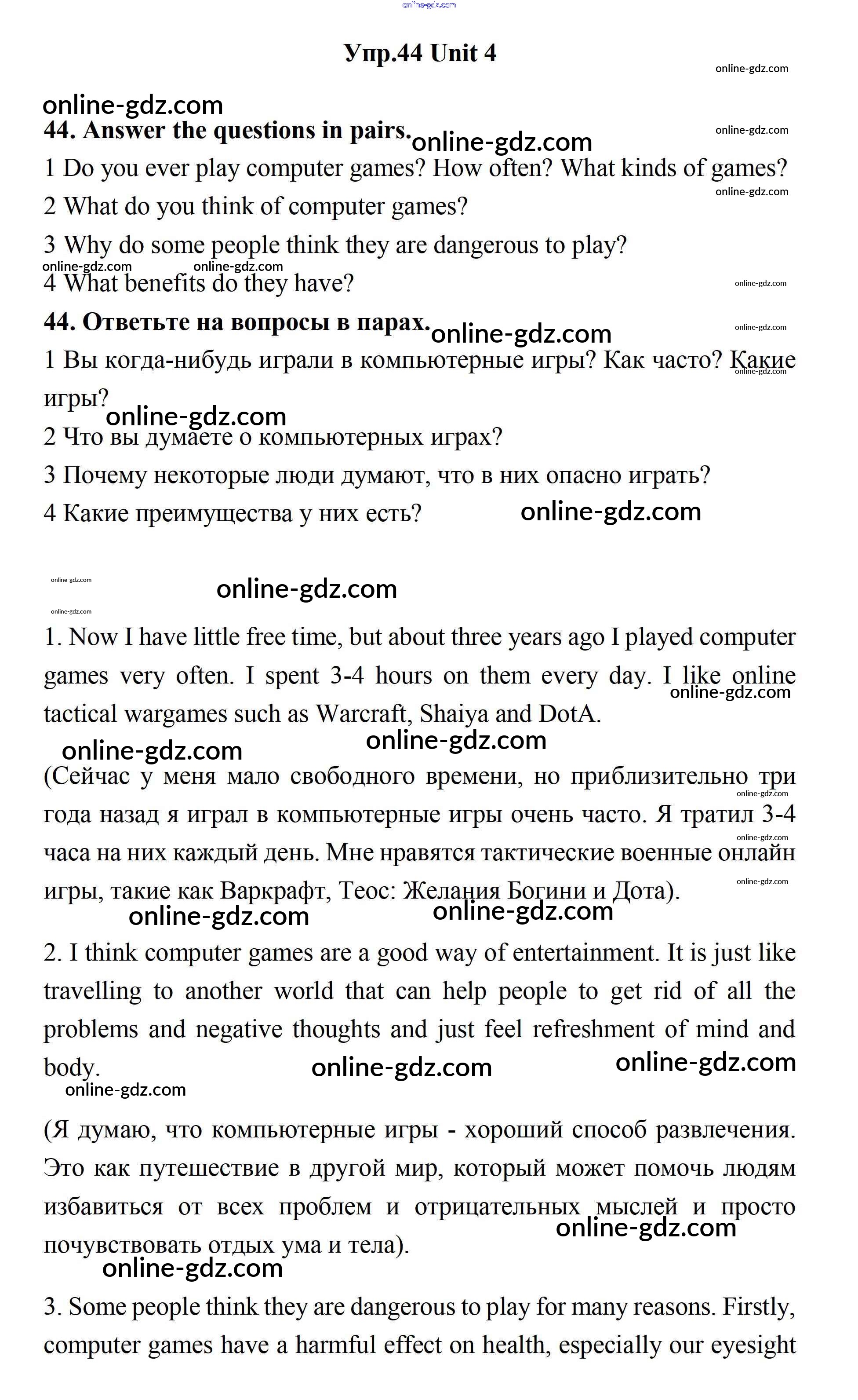 Готовые домашние задания по Английскому языку за 11 класс Учебник Биболетова, Бабушис Enjoy English 2017 - Unit 4. What Are Your Whereаbouts? 44