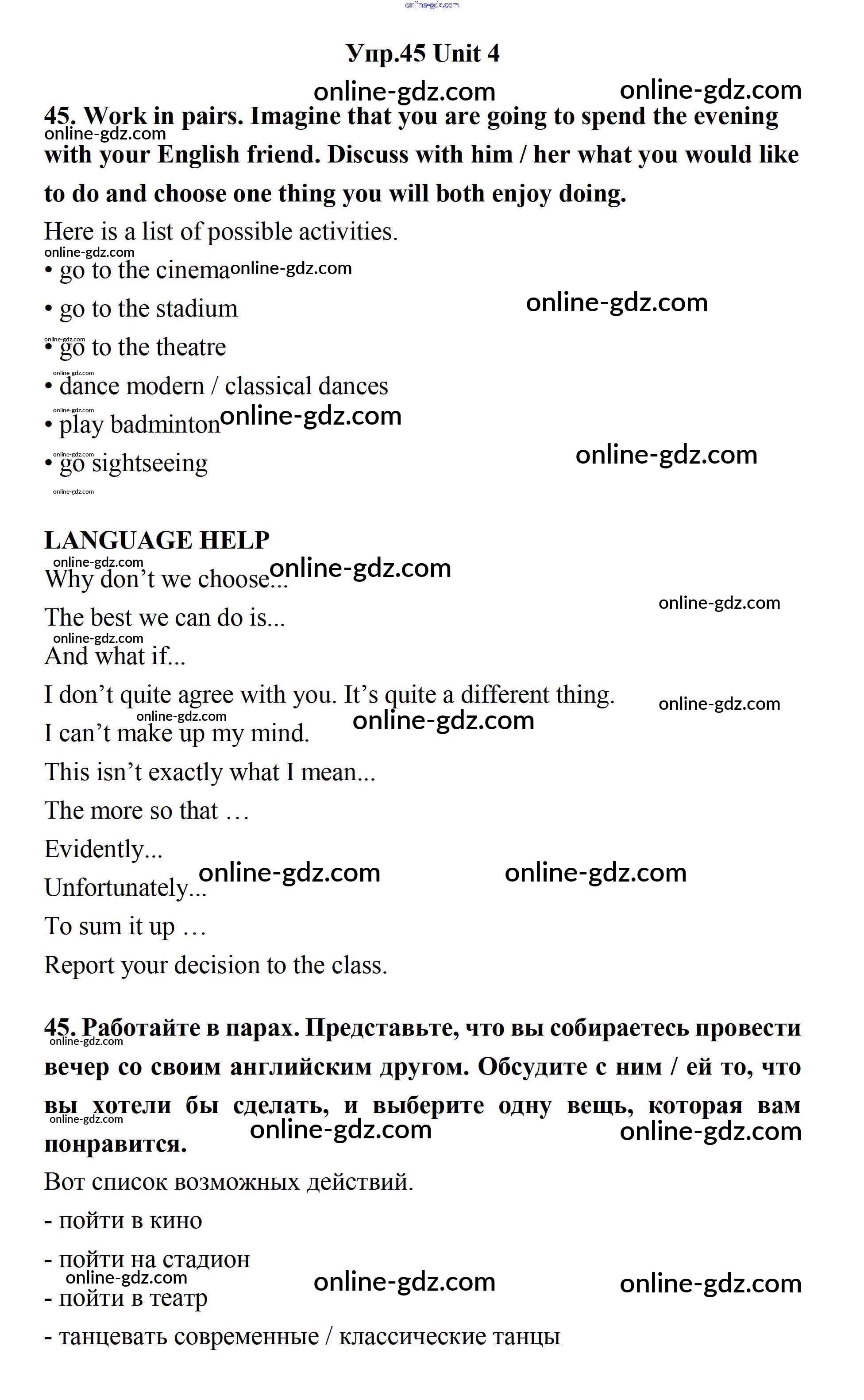 Готовые домашние задания по Английскому языку за 11 класс Учебник Биболетова, Бабушис Enjoy English 2017 - Unit 4. What Are Your Whereаbouts? 45