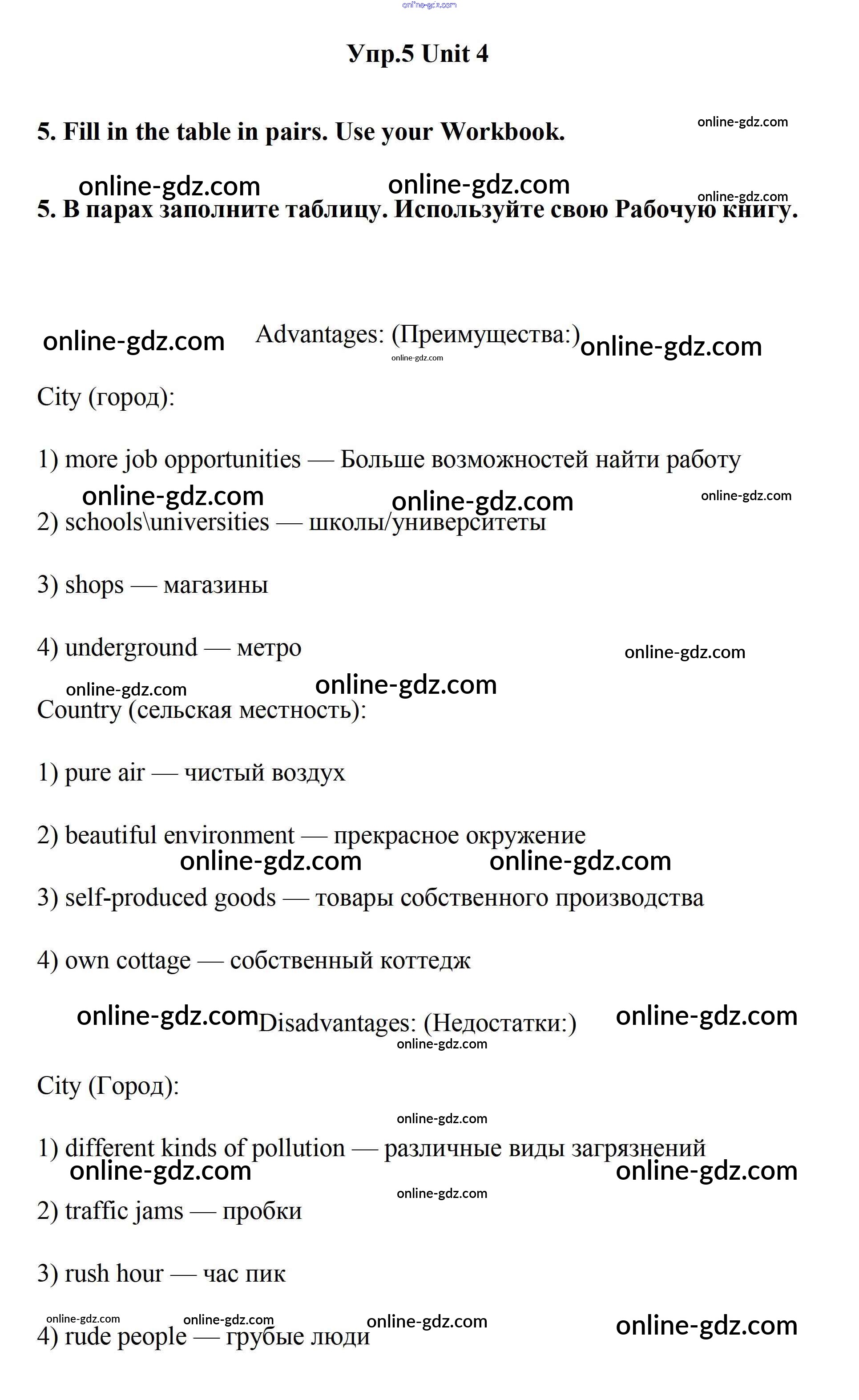 Готовые домашние задания по Английскому языку за 11 класс Учебник Биболетова, Бабушис Enjoy English 2017 - Unit 4. What Are Your Whereаbouts? 5