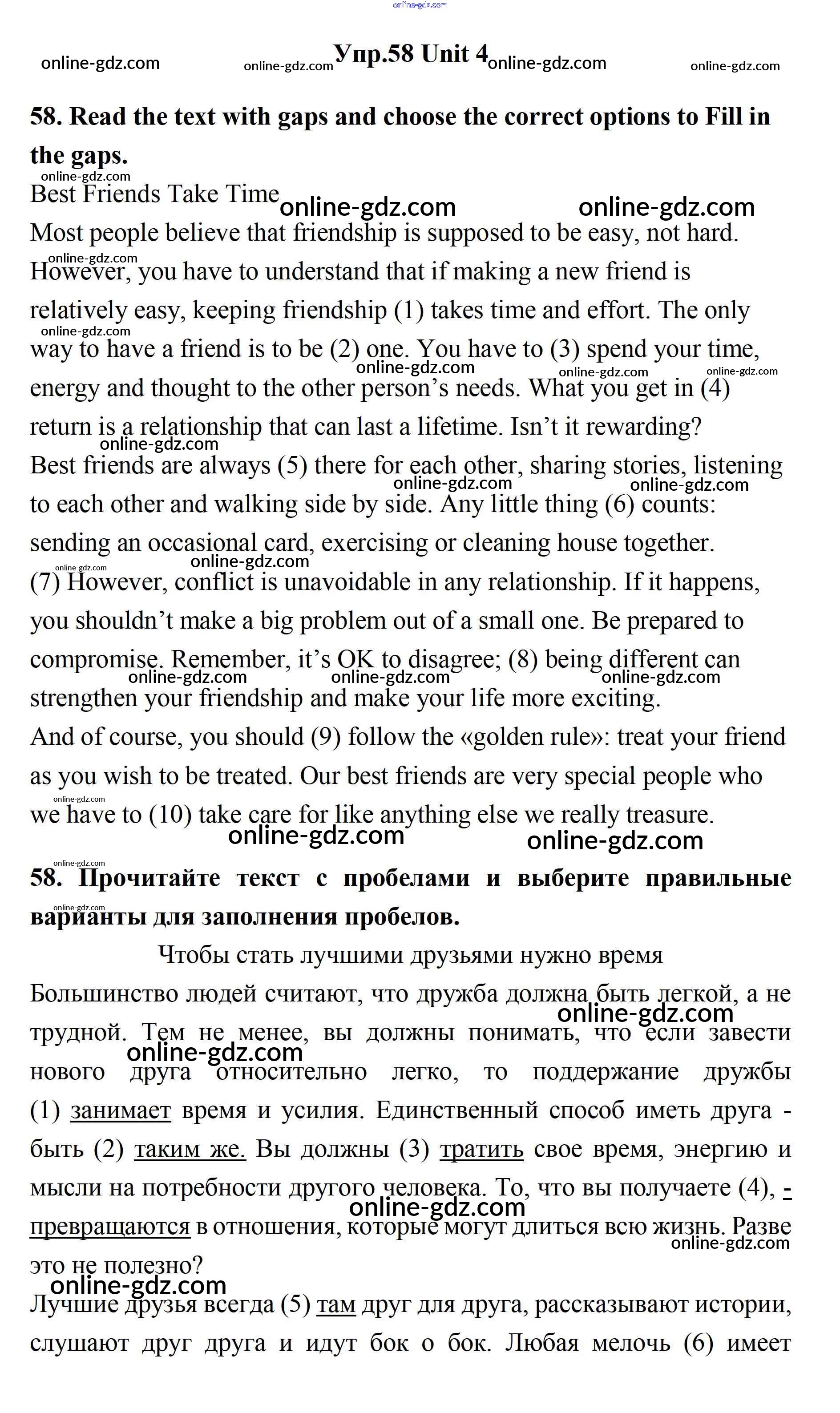 Готовые домашние задания по Английскому языку за 11 класс Учебник Биболетова, Бабушис Enjoy English 2017 - Unit 4. What Are Your Whereаbouts? 58
