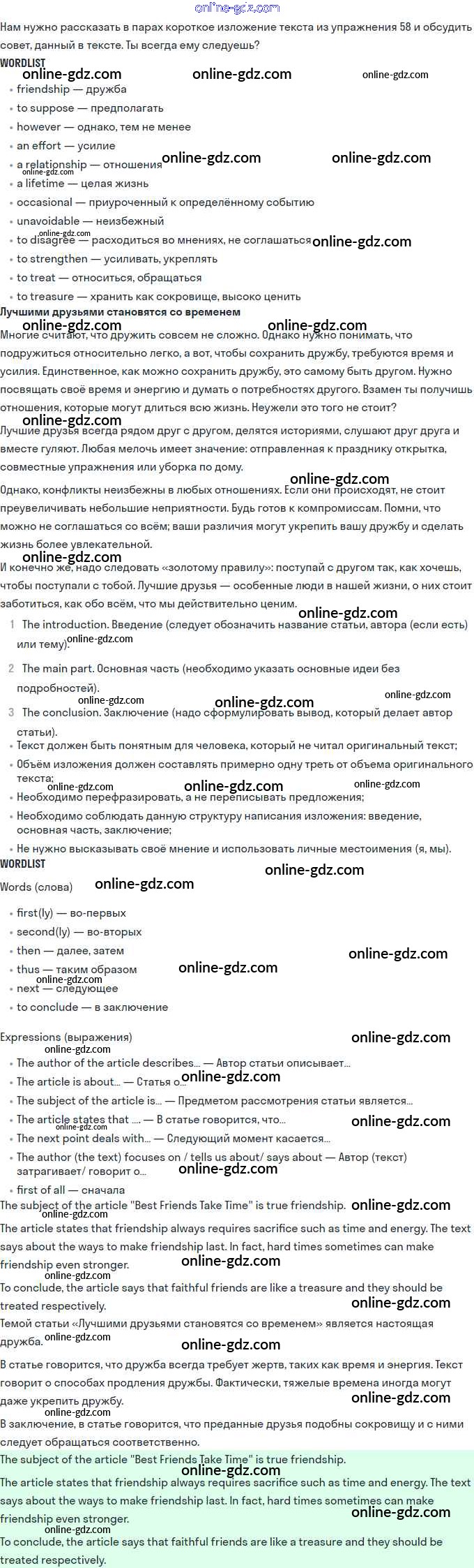 Готовые домашние задания по Английскому языку за 11 класс Учебник Биболетова, Бабушис Enjoy English 2017 - Unit 4. What Are Your Whereаbouts? 59