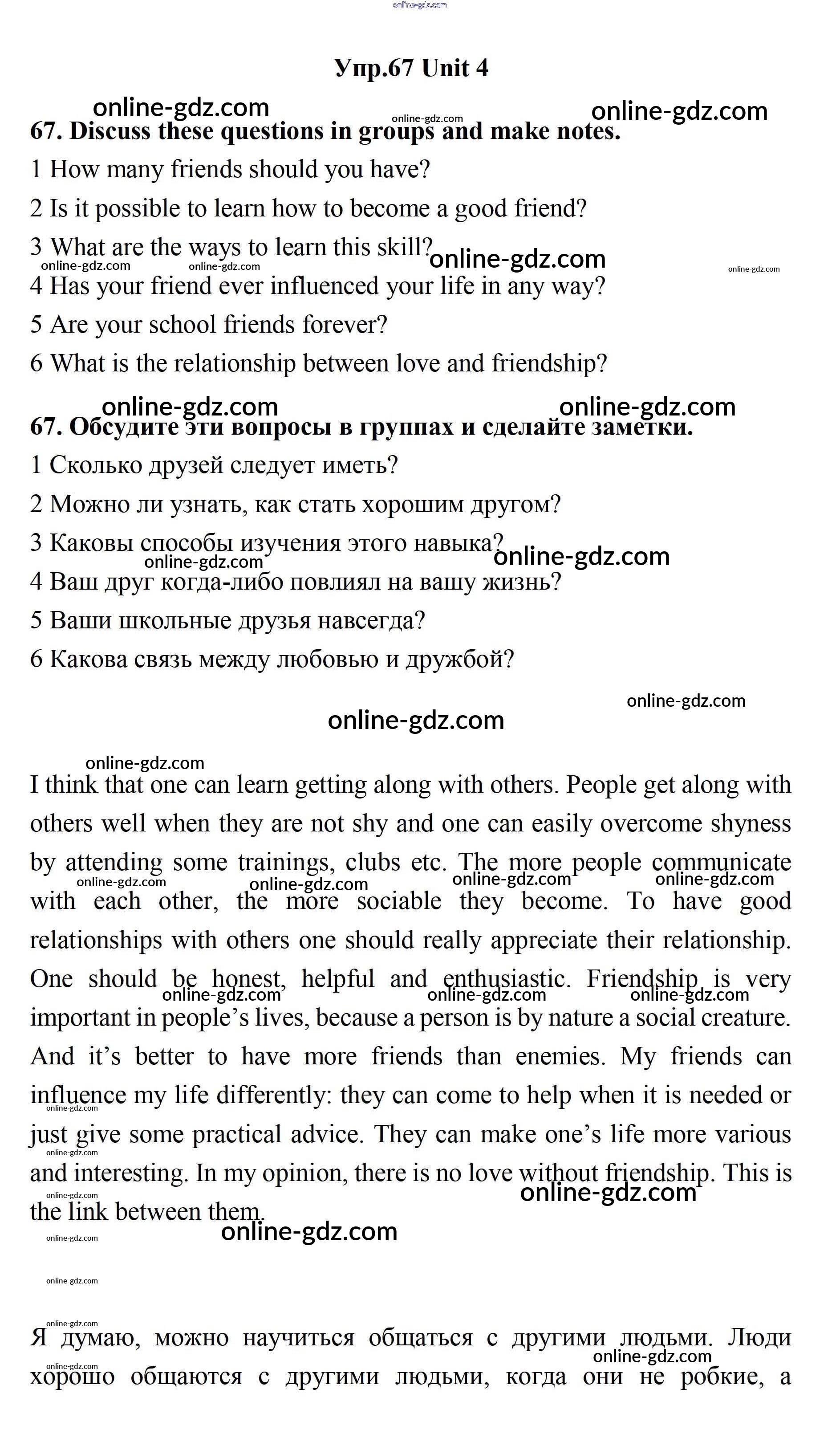 Готовые домашние задания по Английскому языку за 11 класс Учебник Биболетова, Бабушис Enjoy English 2017 - Unit 4. What Are Your Whereаbouts? 67
