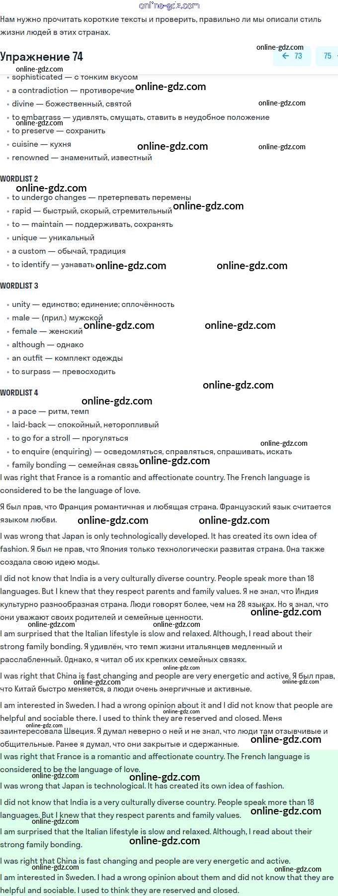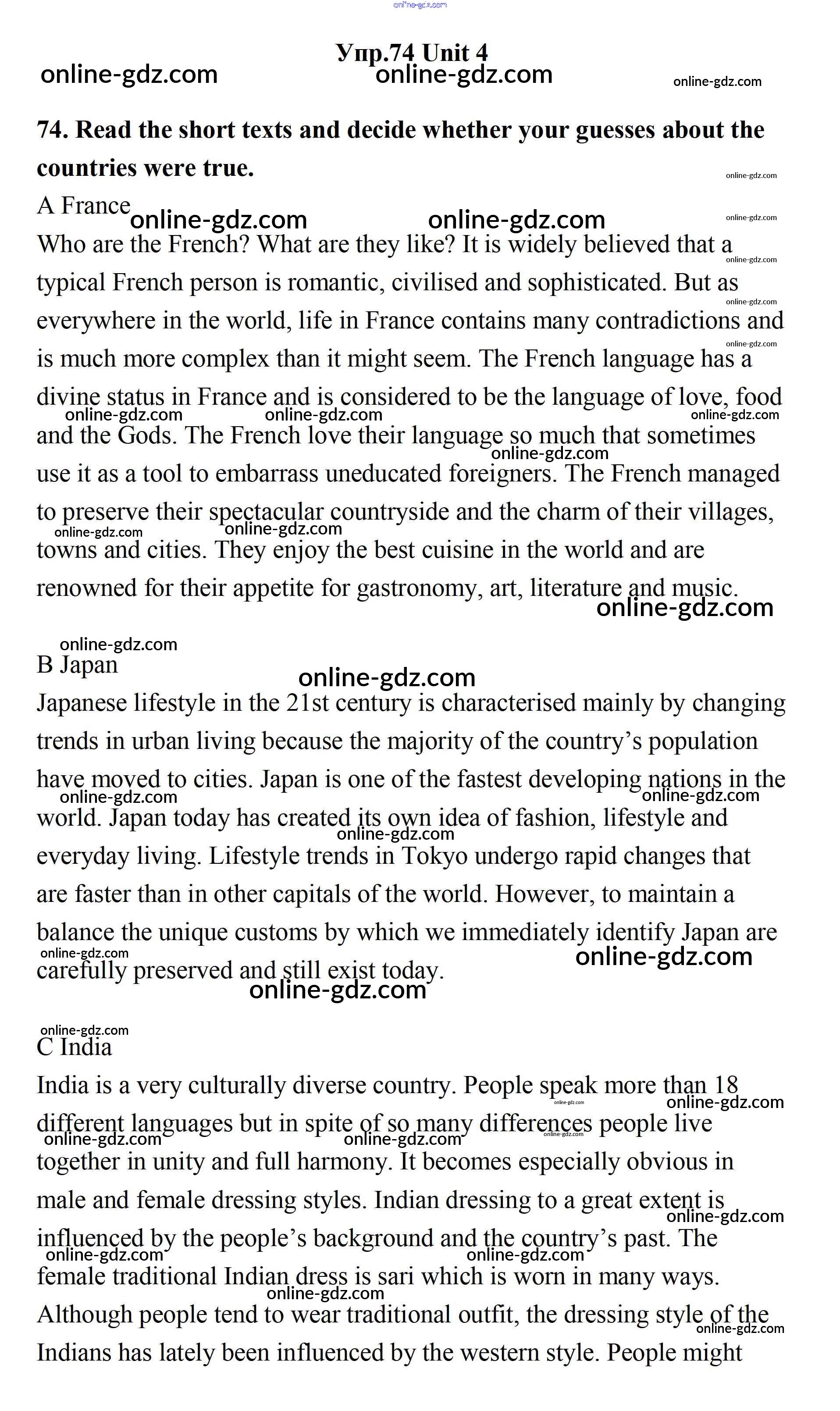 Готовые домашние задания по Английскому языку за 11 класс Учебник Биболетова, Бабушис Enjoy English 2017 - Unit 4. What Are Your Whereаbouts? 74