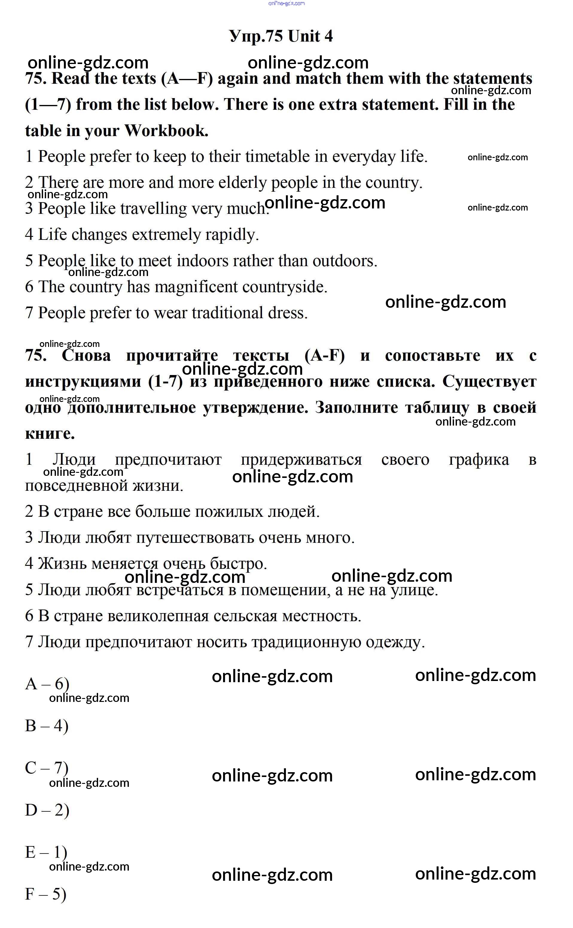 Готовые домашние задания по Английскому языку за 11 класс Учебник Биболетова, Бабушис Enjoy English 2017 - Unit 4. What Are Your Whereаbouts? 75