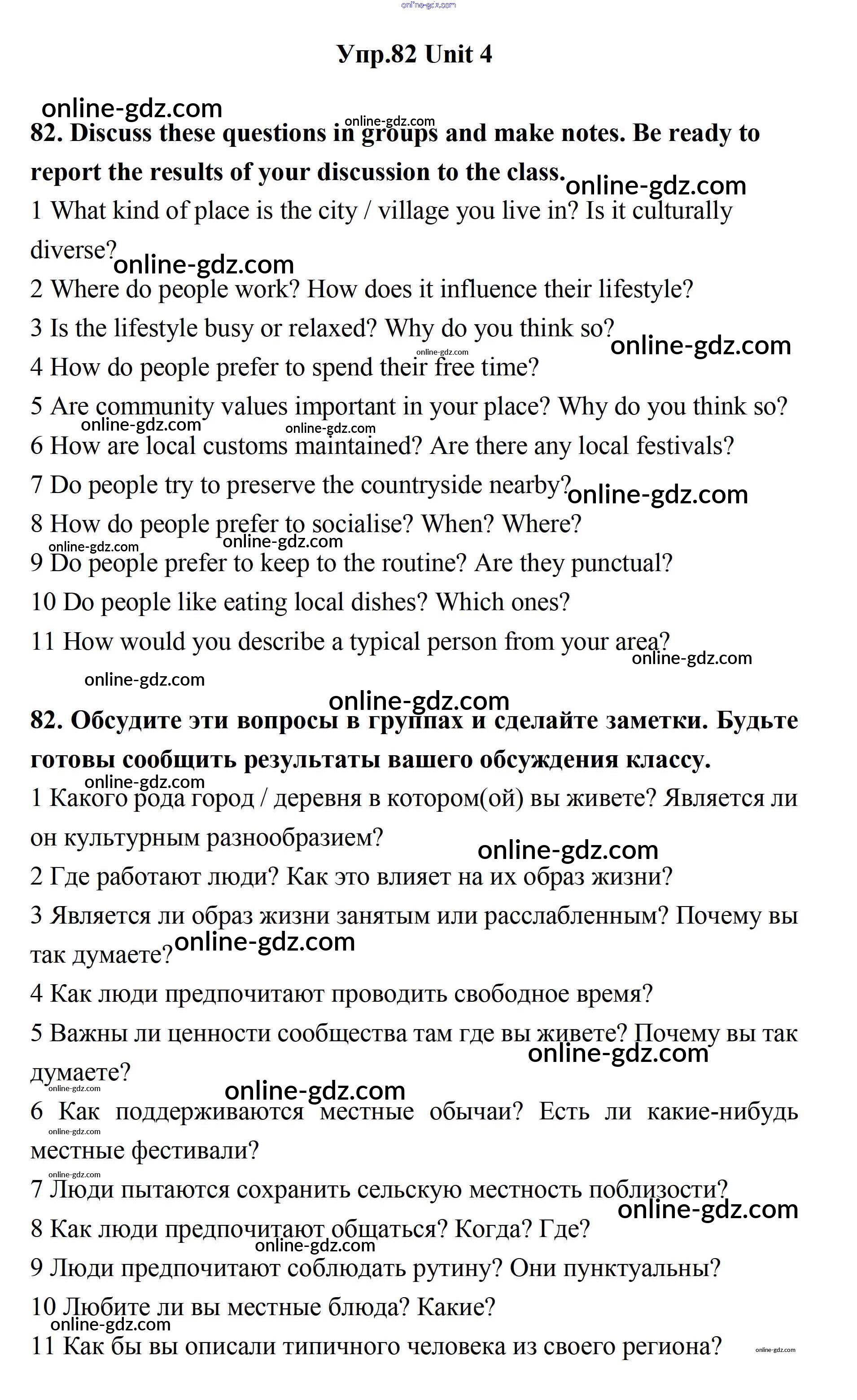 Готовые домашние задания по Английскому языку за 11 класс Учебник Биболетова, Бабушис Enjoy English 2017 - Unit 4. What Are Your Whereаbouts? 82