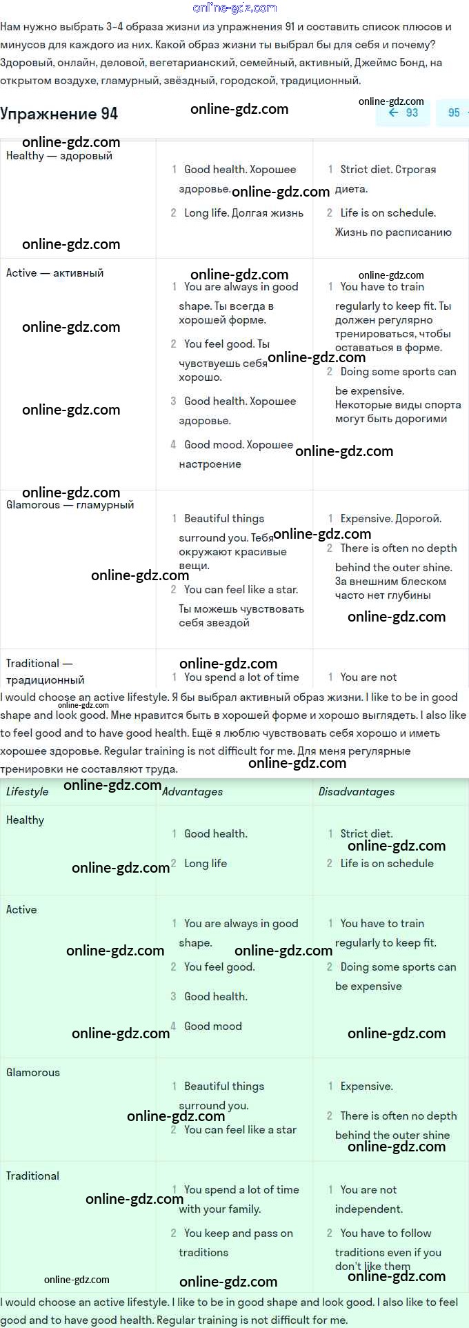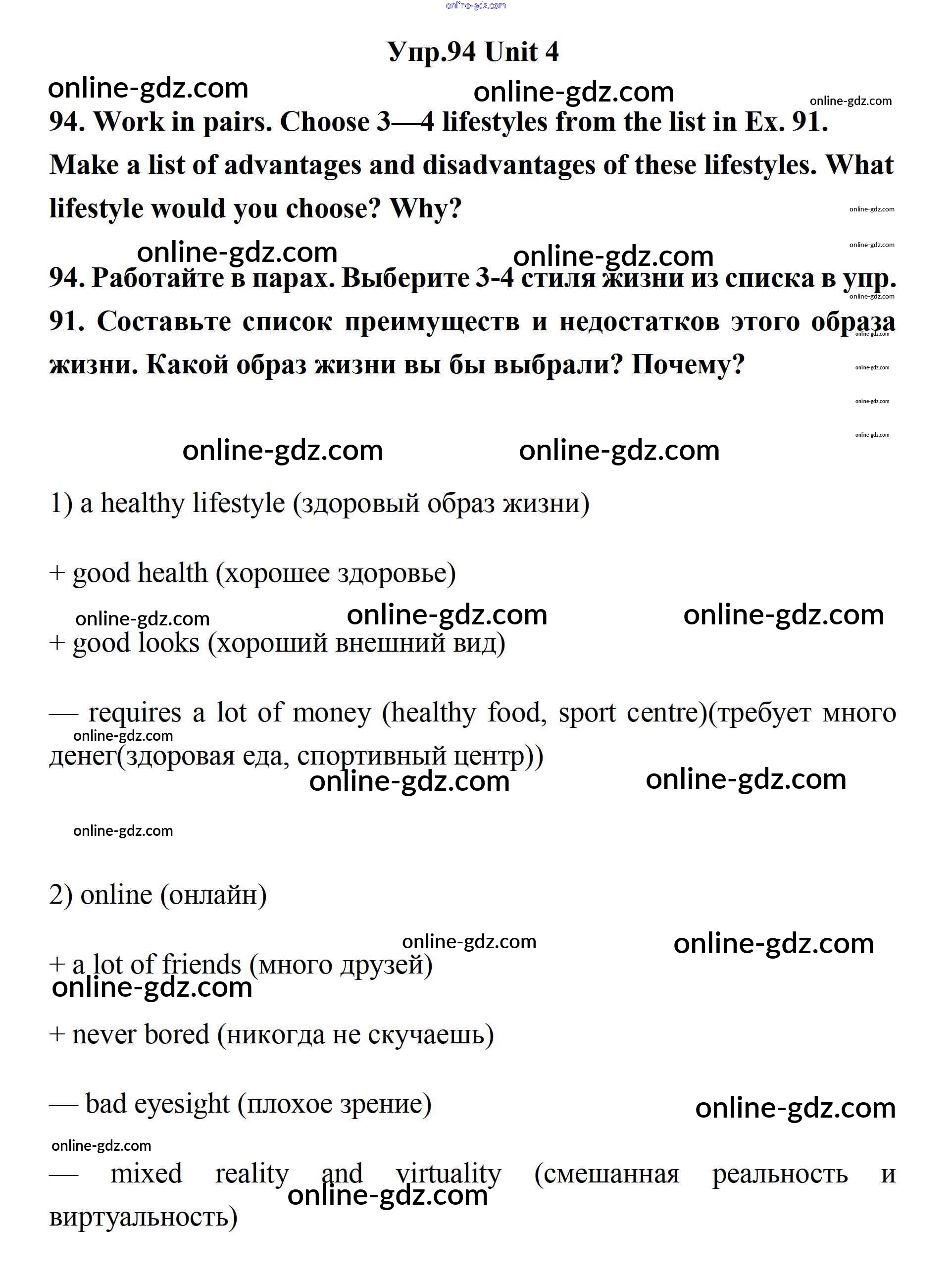 Готовые домашние задания по Английскому языку за 11 класс Учебник Биболетова, Бабушис Enjoy English 2017 - Unit 4. What Are Your Whereаbouts? 94
