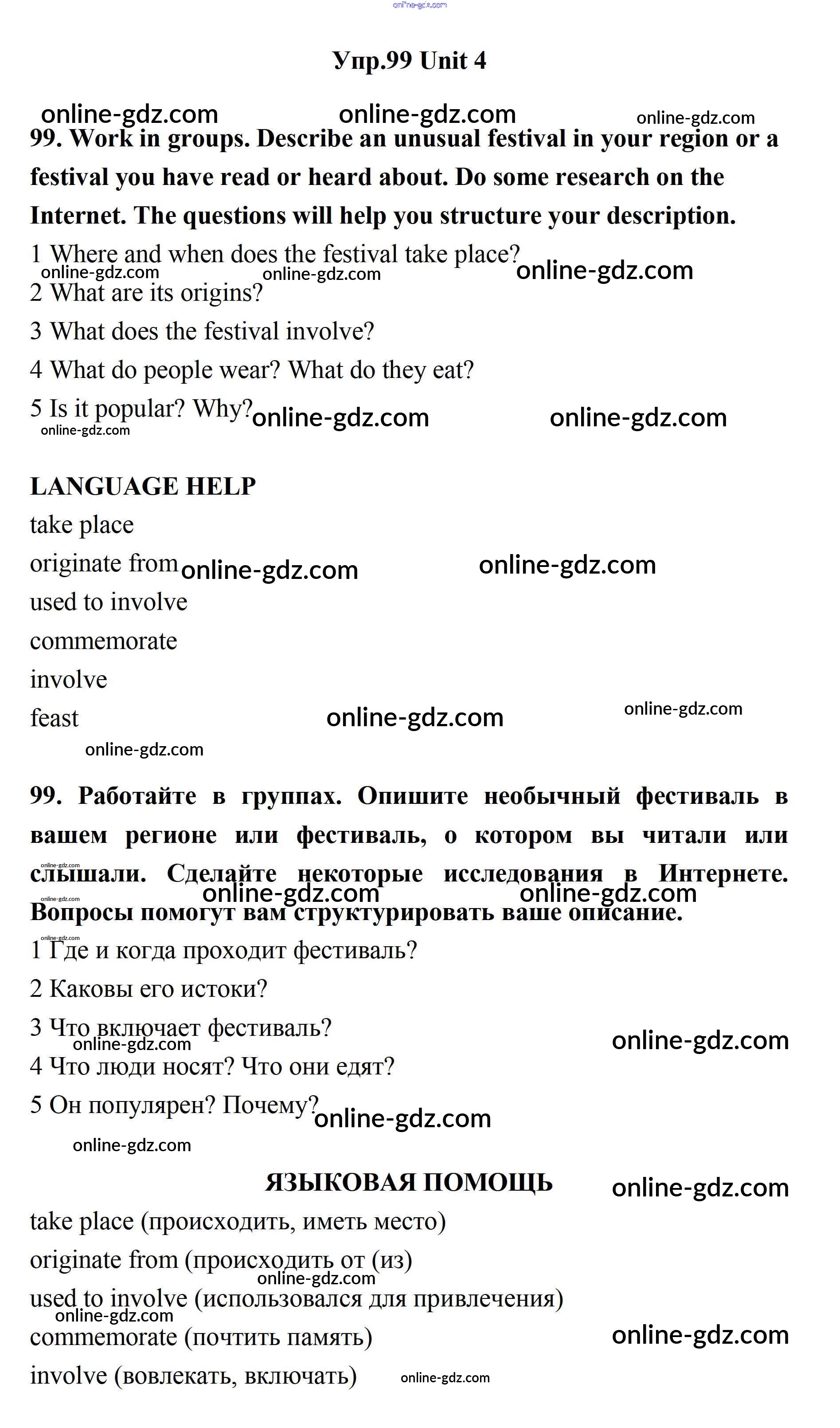 Готовые домашние задания по Английскому языку за 11 класс Учебник Биболетова, Бабушис Enjoy English 2017 - Unit 4. What Are Your Whereаbouts? 99
