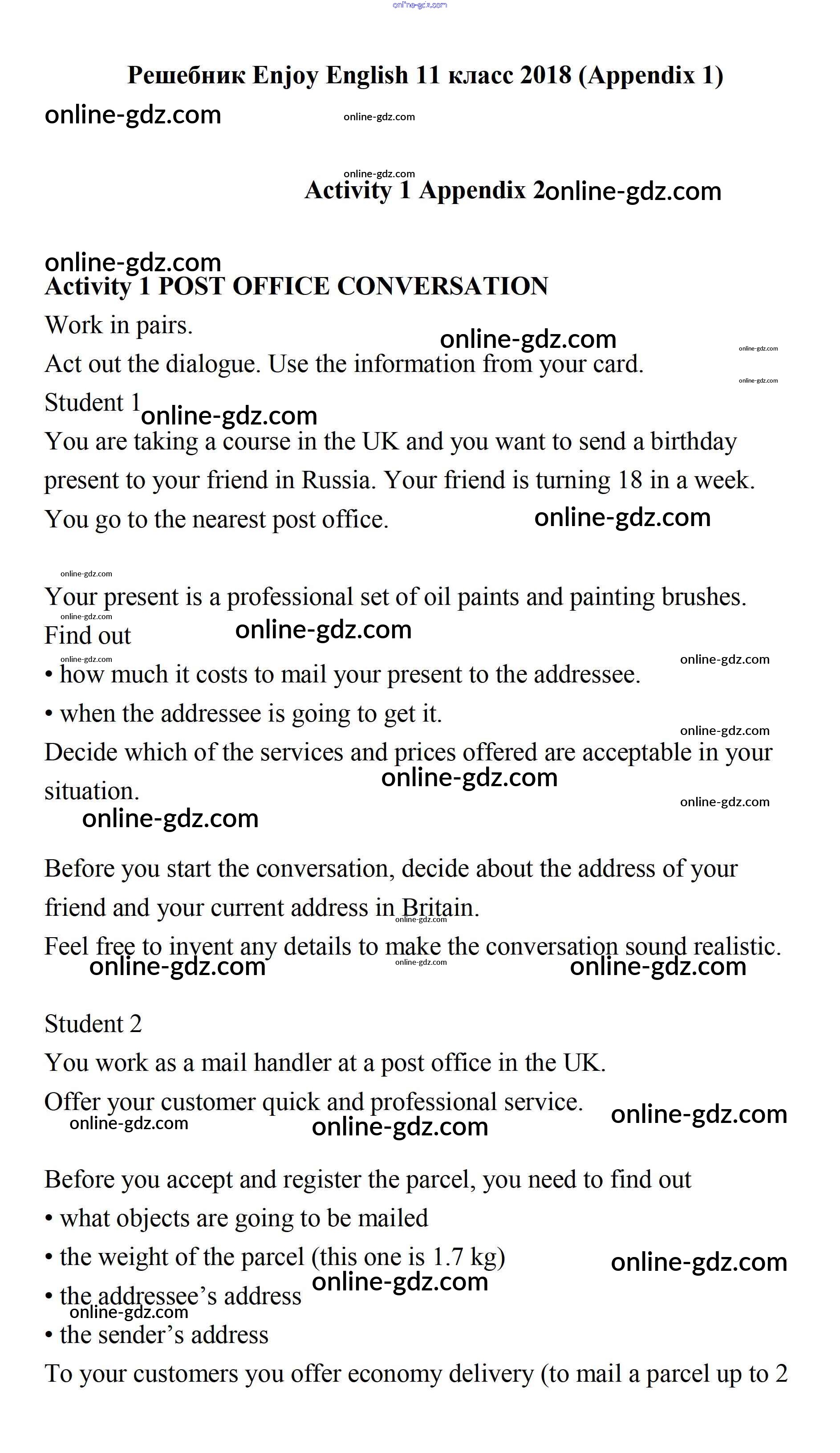 Готовые домашние задания по Английскому языку за 11 класс Учебник Биболетова, Бабушис Enjoy English 2017 - Appendix 1 Activity 1
