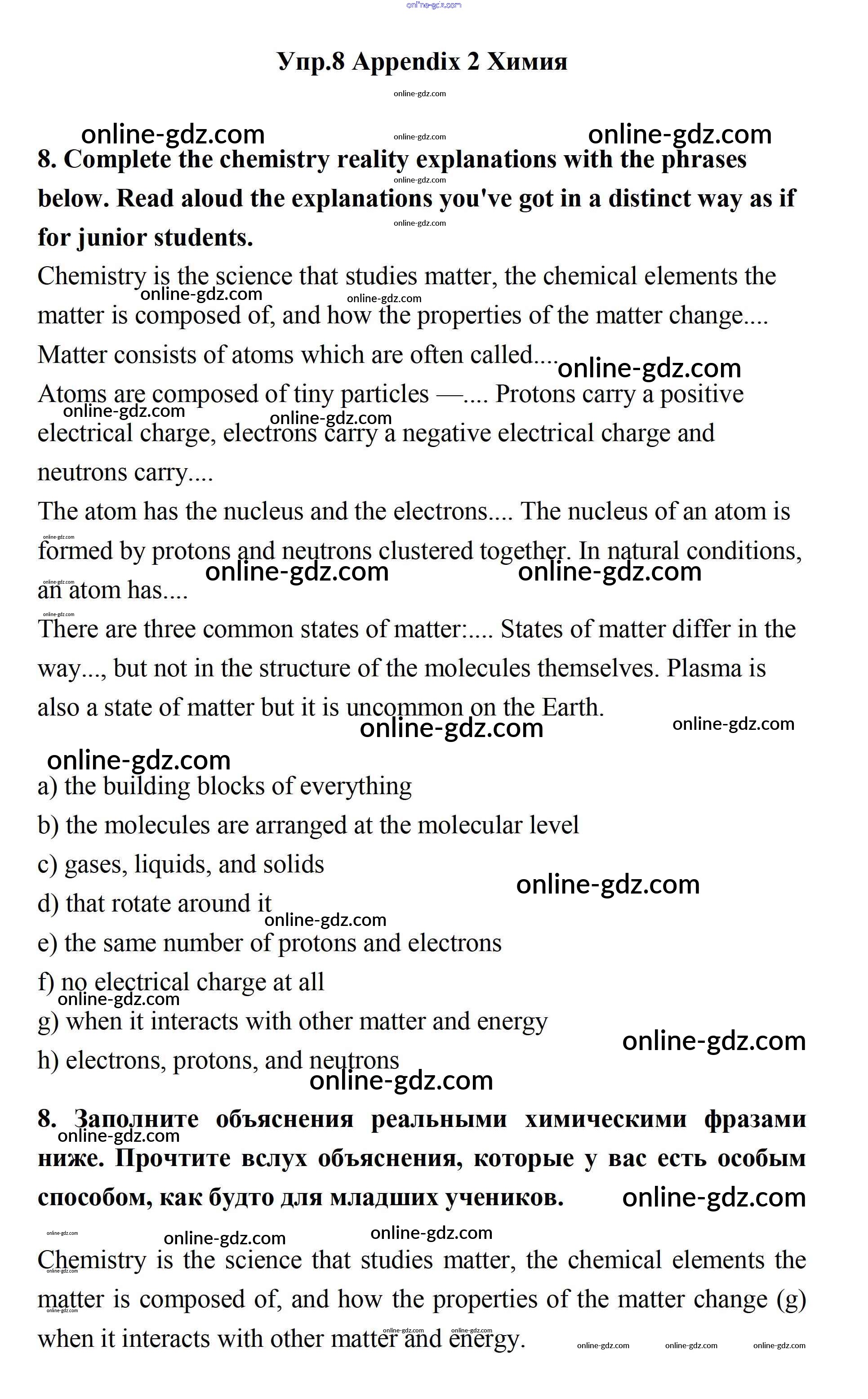 Готовые домашние задания по Английскому языку за 11 класс Учебник Биболетова, Бабушис Enjoy English 2017 - What makes chemistry fascinating? Appendix 2 8