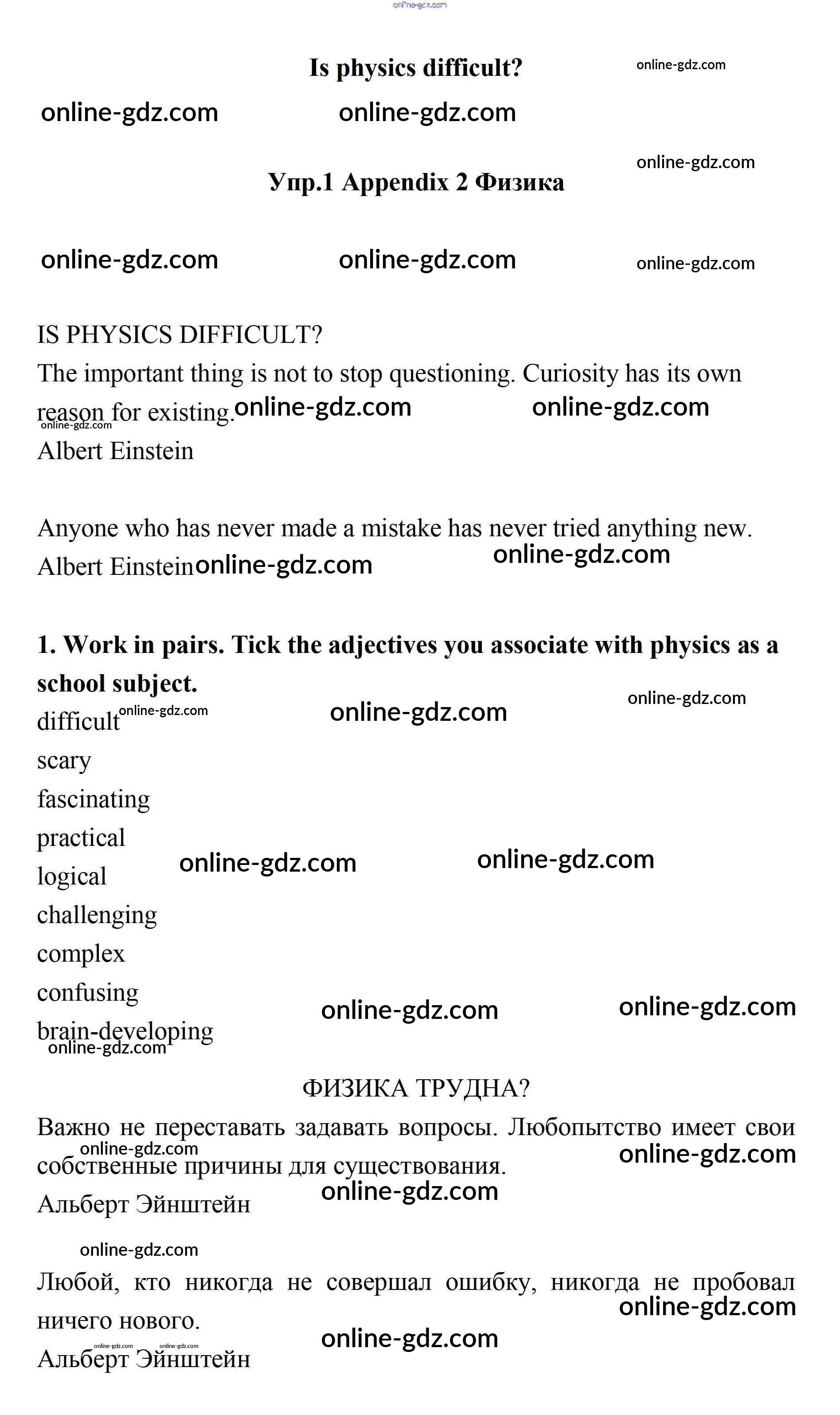 Готовые домашние задания по Английскому языку за 11 класс Учебник Биболетова, Бабушис Enjoy English 2017 - Is physics difficult? Appendix 2 1