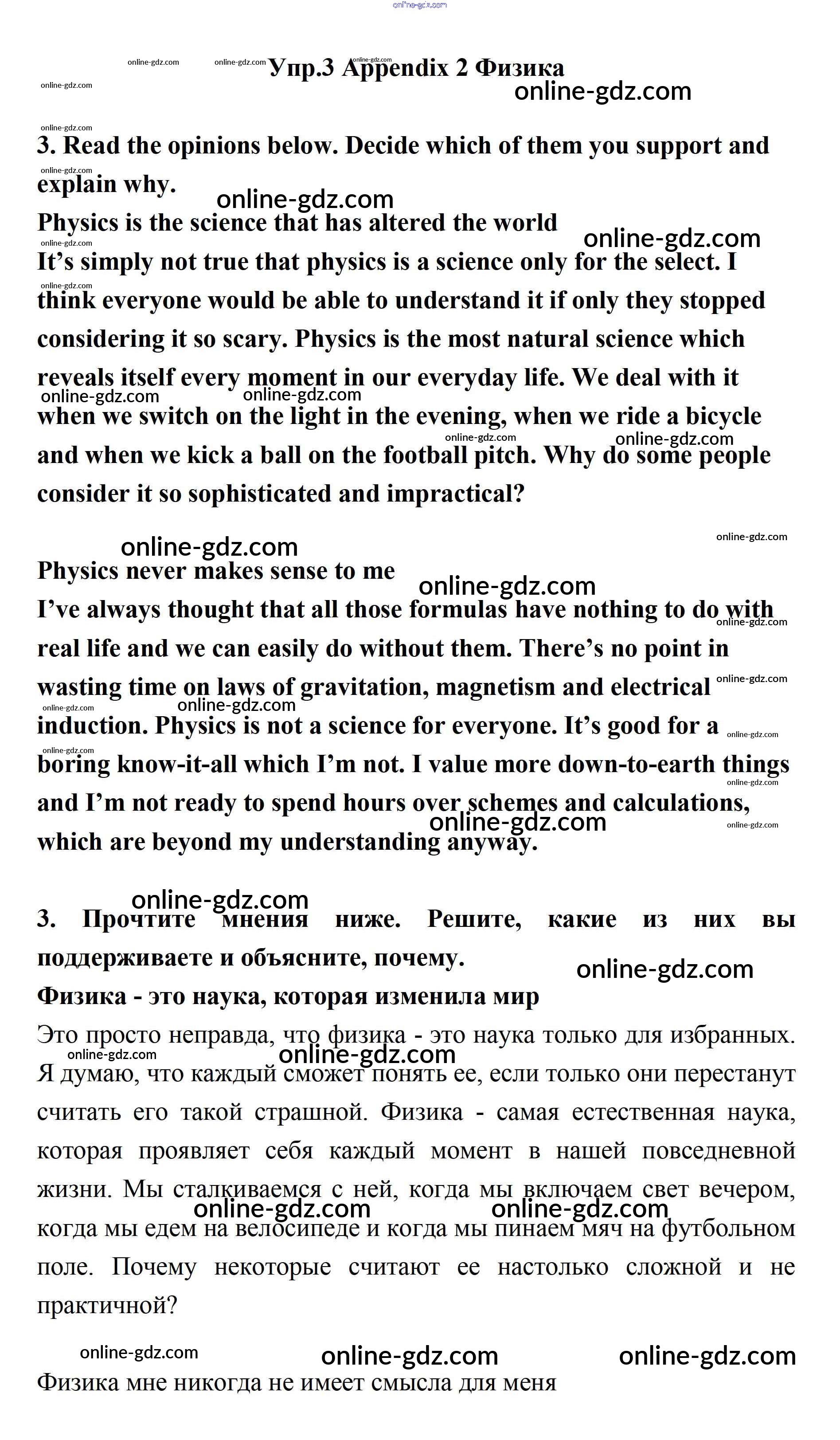 Готовые домашние задания по Английскому языку за 11 класс Учебник Биболетова, Бабушис Enjoy English 2017 - Is physics difficult? Appendix 2 3