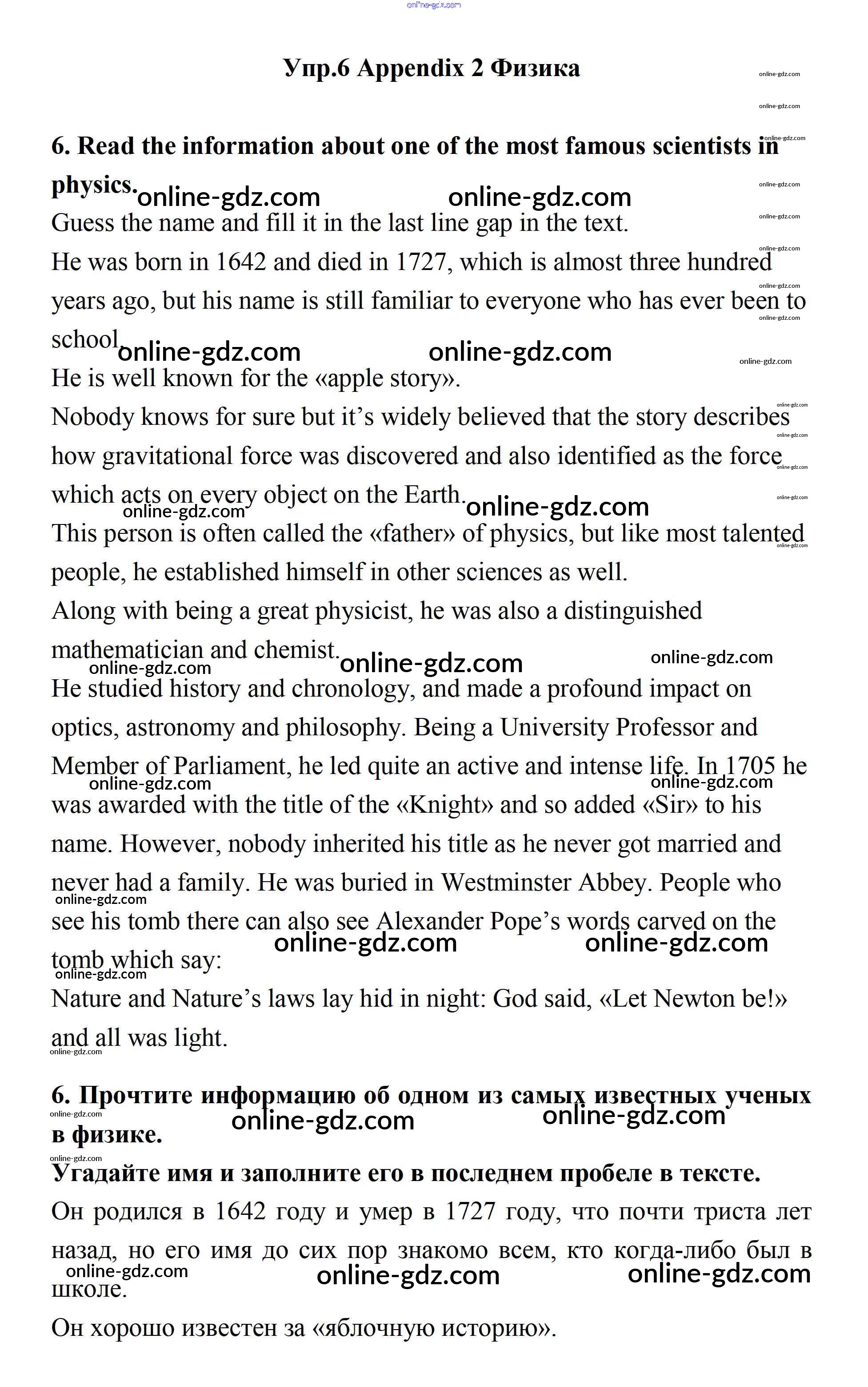 Готовые домашние задания по Английскому языку за 11 класс Учебник Биболетова, Бабушис Enjoy English 2017 - Is physics difficult? Appendix 2 6