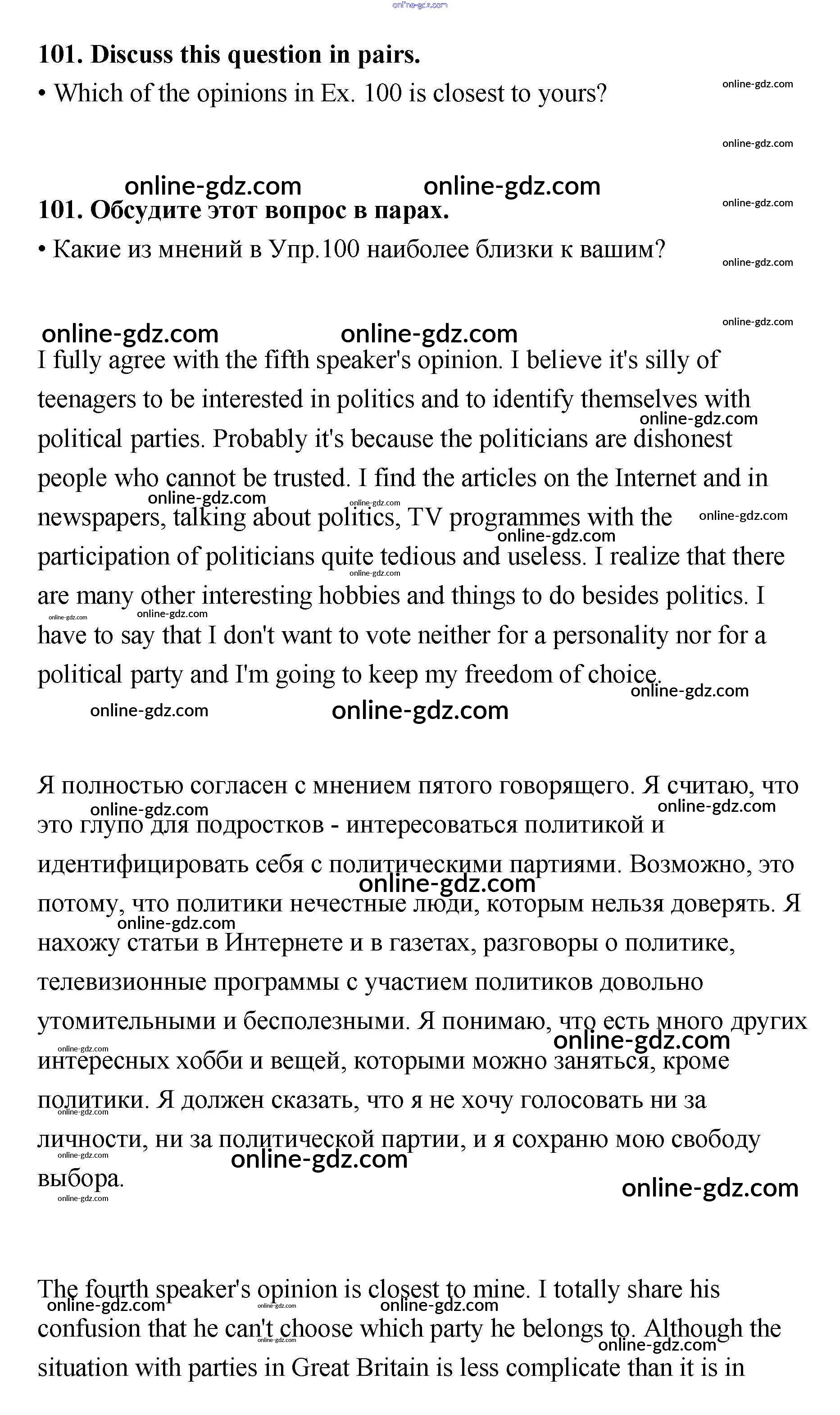 Готовые домашние задания по Английскому языку за 11 класс Учебник Биболетова, Трубанева Enjoy English 2015 - Unit 1 101