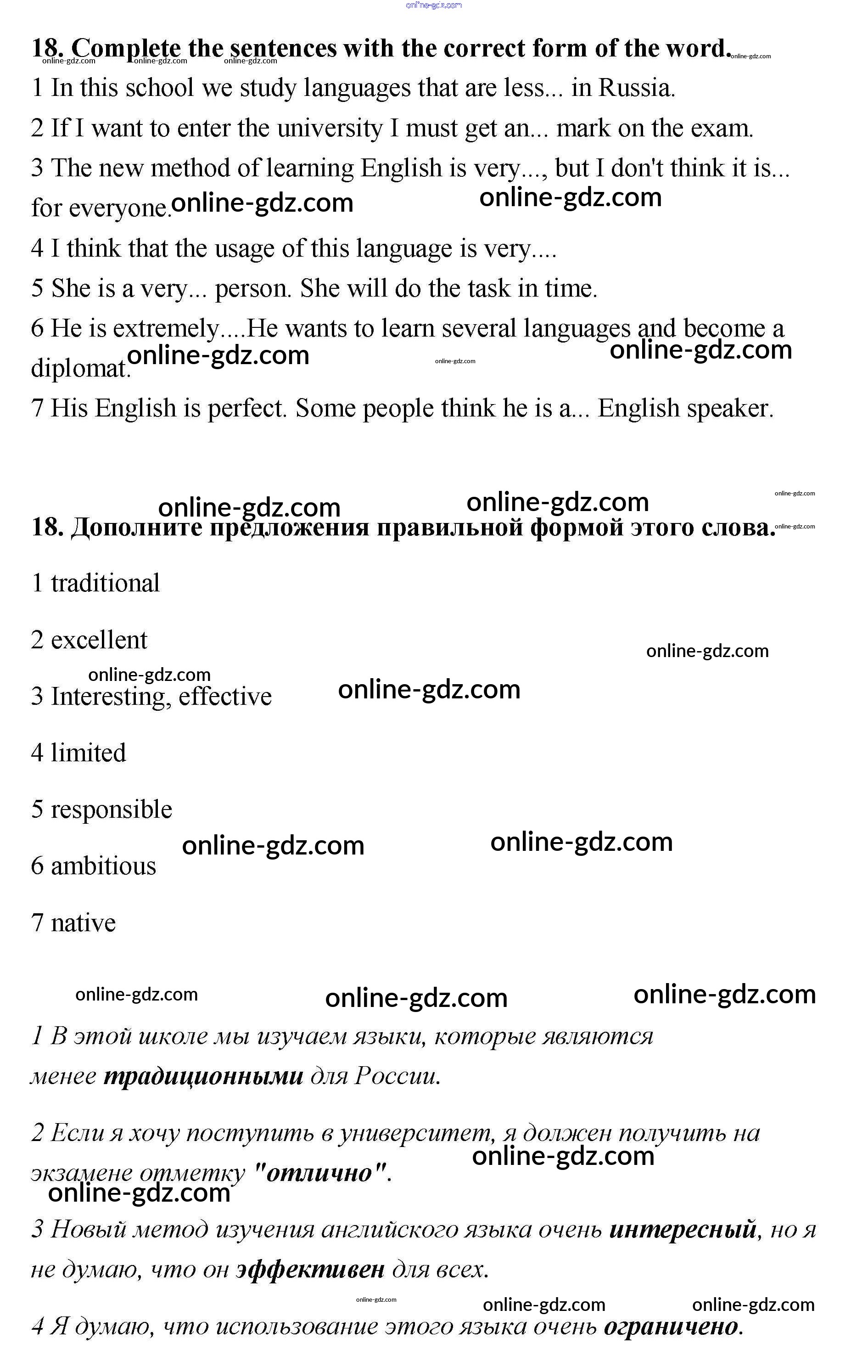 Готовые домашние задания по Английскому языку за 11 класс Учебник Биболетова, Трубанева Enjoy English 2015 - Unit 1 18