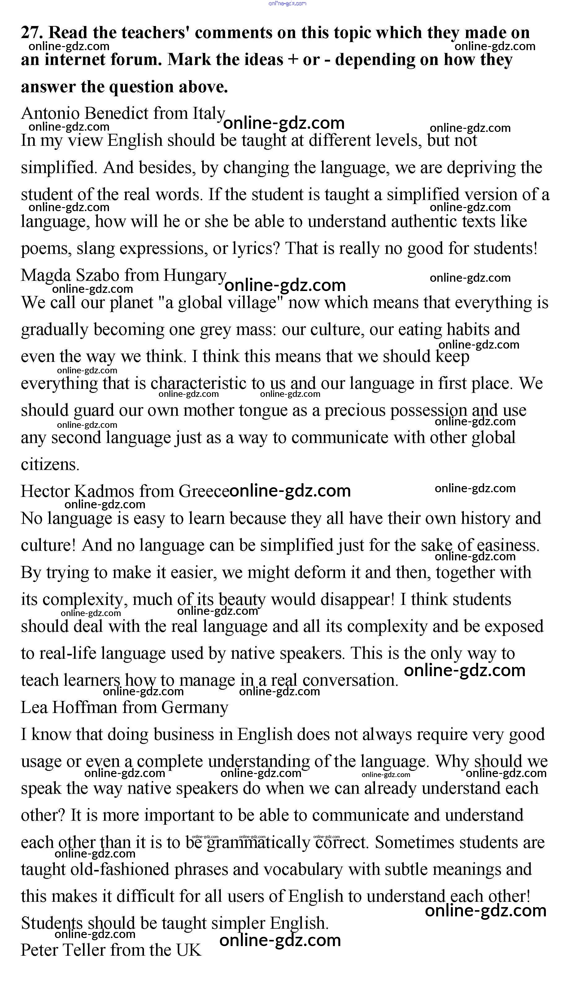 Готовые домашние задания по Английскому языку за 11 класс Учебник Биболетова, Трубанева Enjoy English 2015 - Unit 1 27