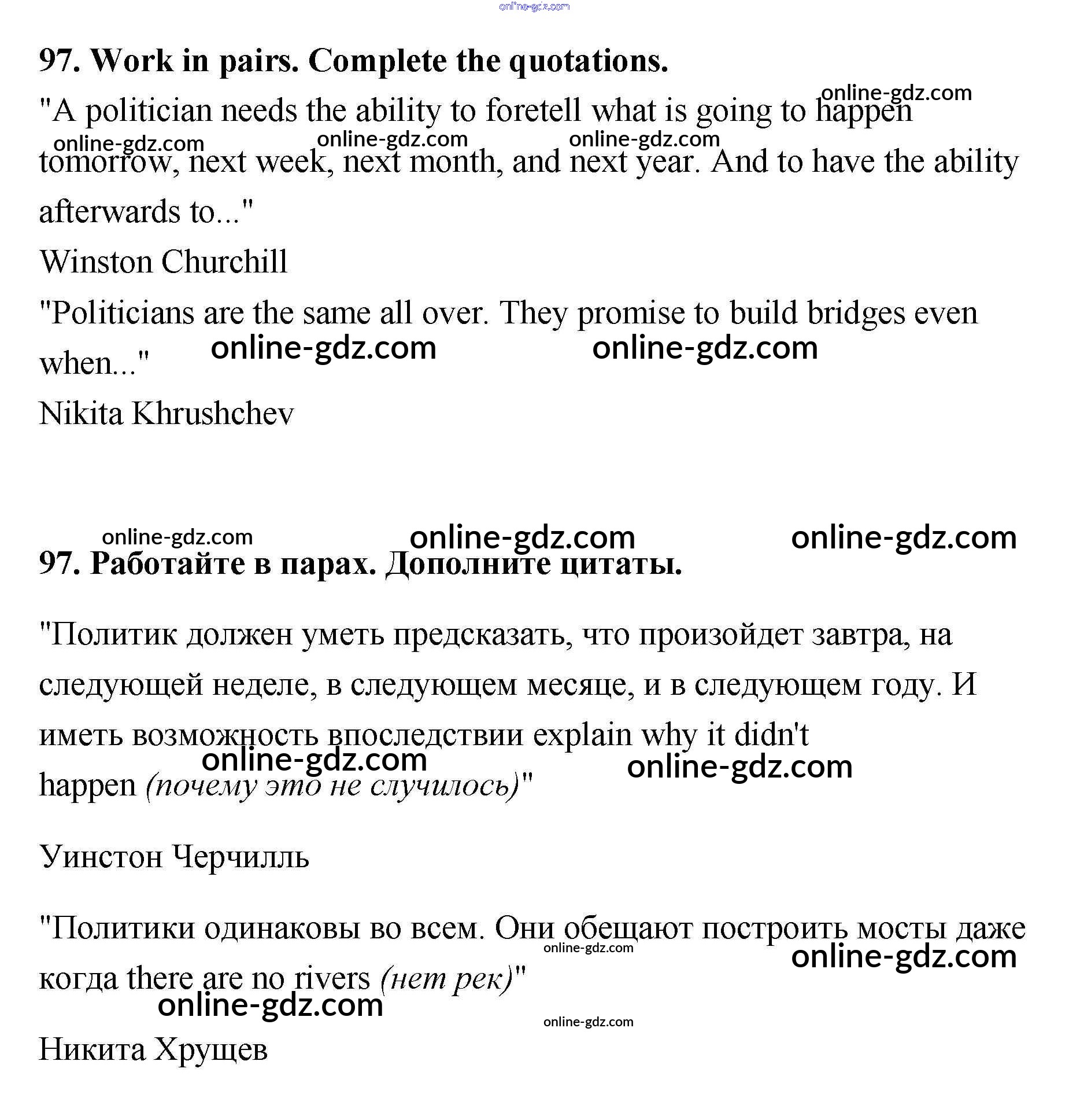 Готовые домашние задания по Английскому языку за 11 класс Учебник Биболетова, Трубанева Enjoy English 2015 - Unit 1 97