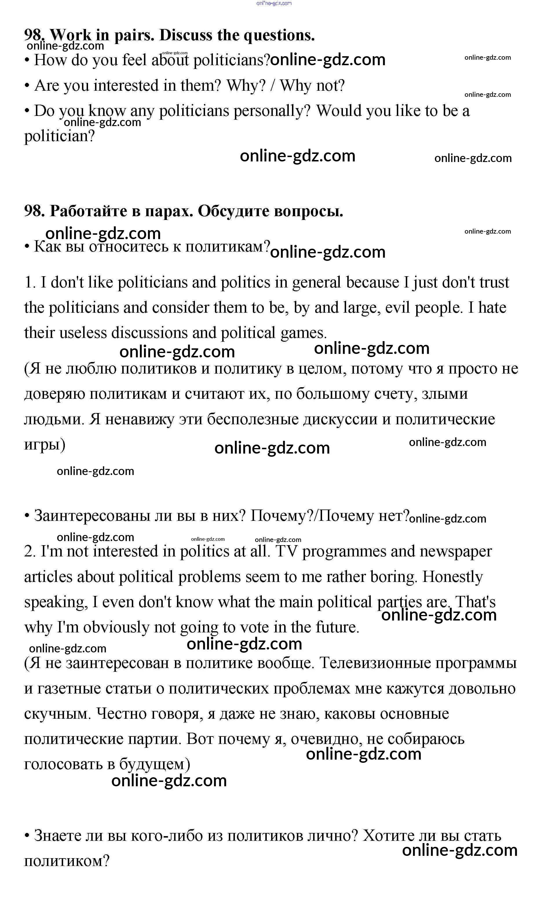 Готовые домашние задания по Английскому языку за 11 класс Учебник Биболетова, Трубанева Enjoy English 2015 - Unit 1 98