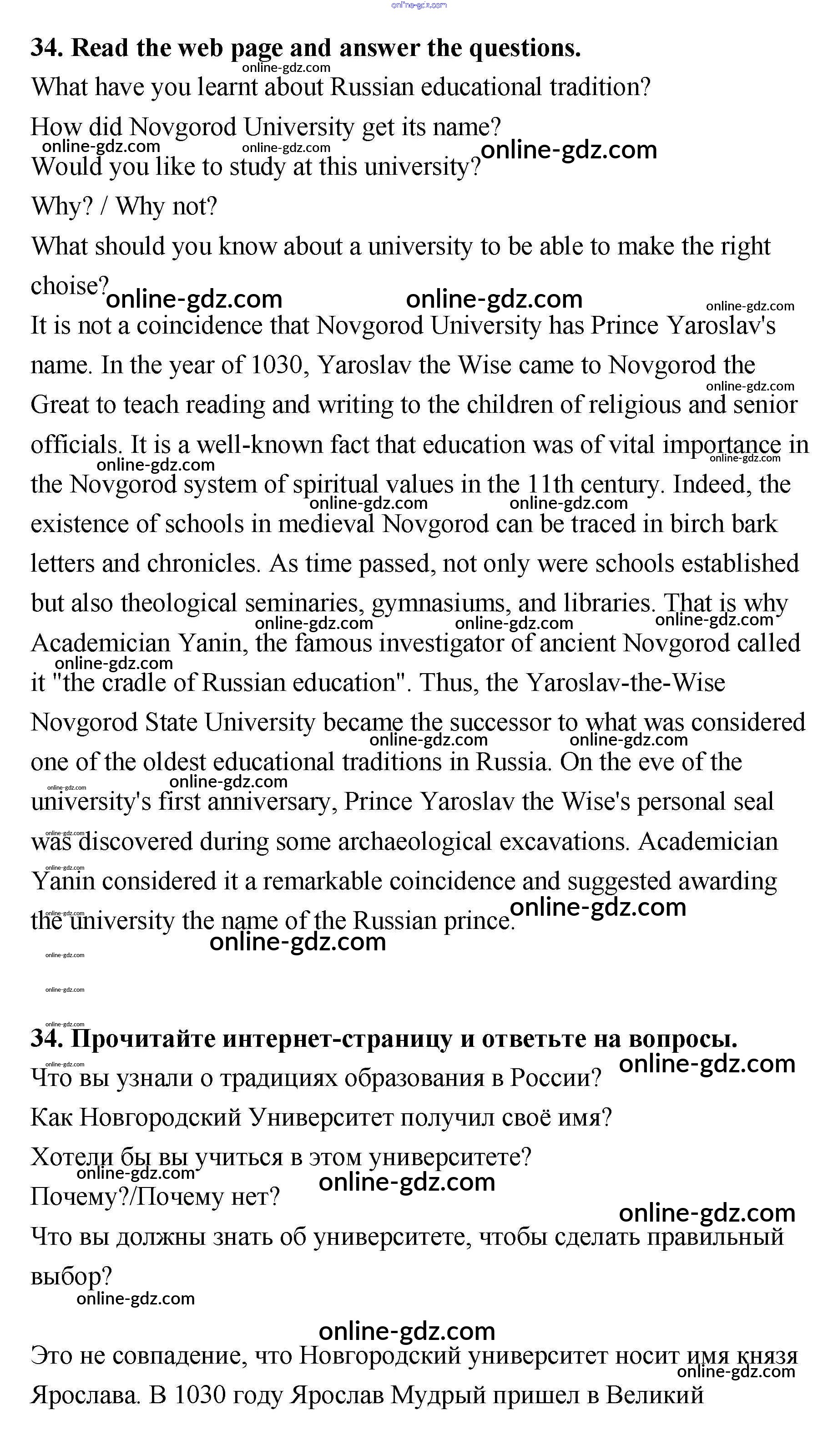 Готовые домашние задания по Английскому языку за 11 класс Учебник Биболетова, Трубанева Enjoy English 2015 - Unit 2 34