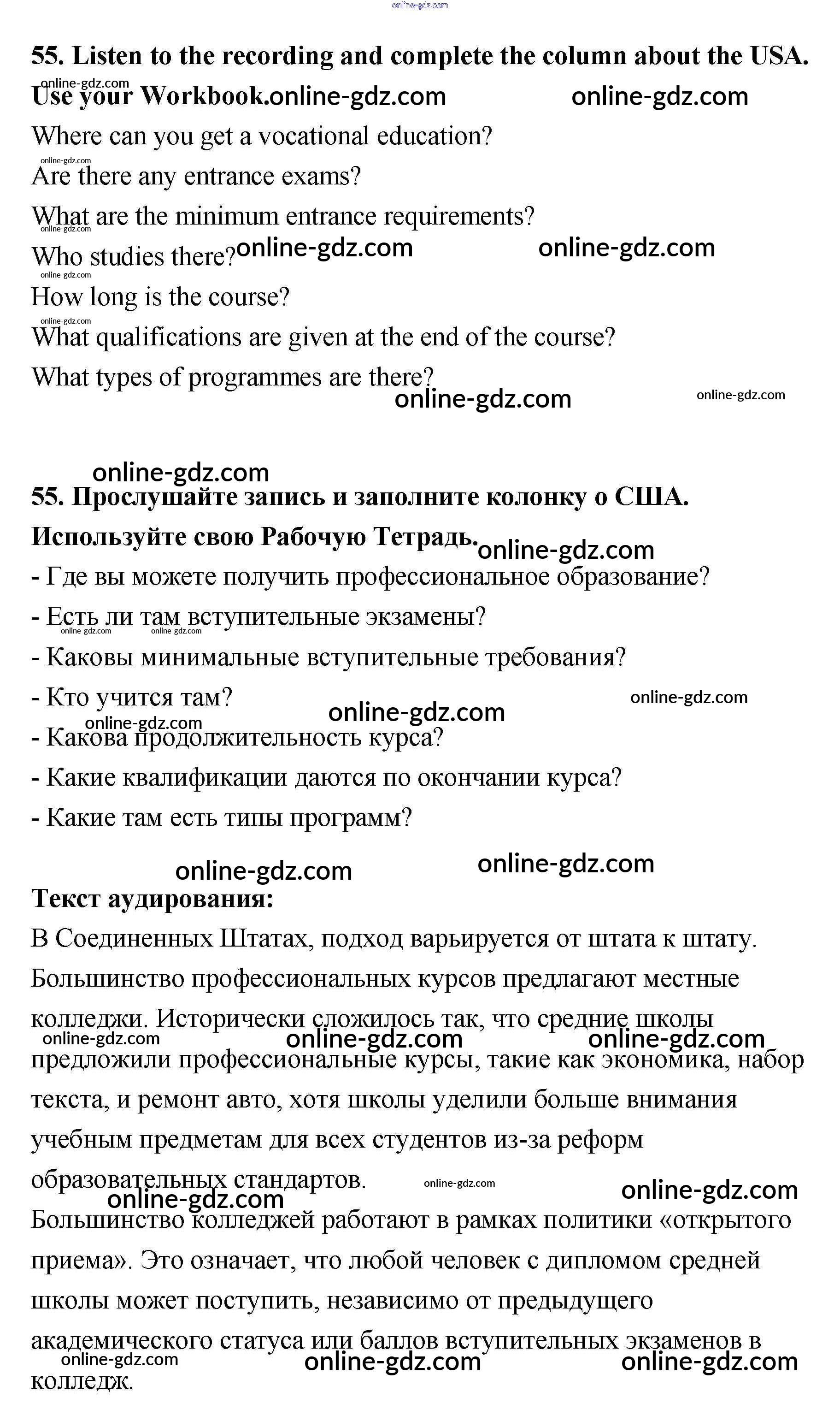 Готовые домашние задания по Английскому языку за 11 класс Учебник Биболетова, Трубанева Enjoy English 2015 - Unit 2 55