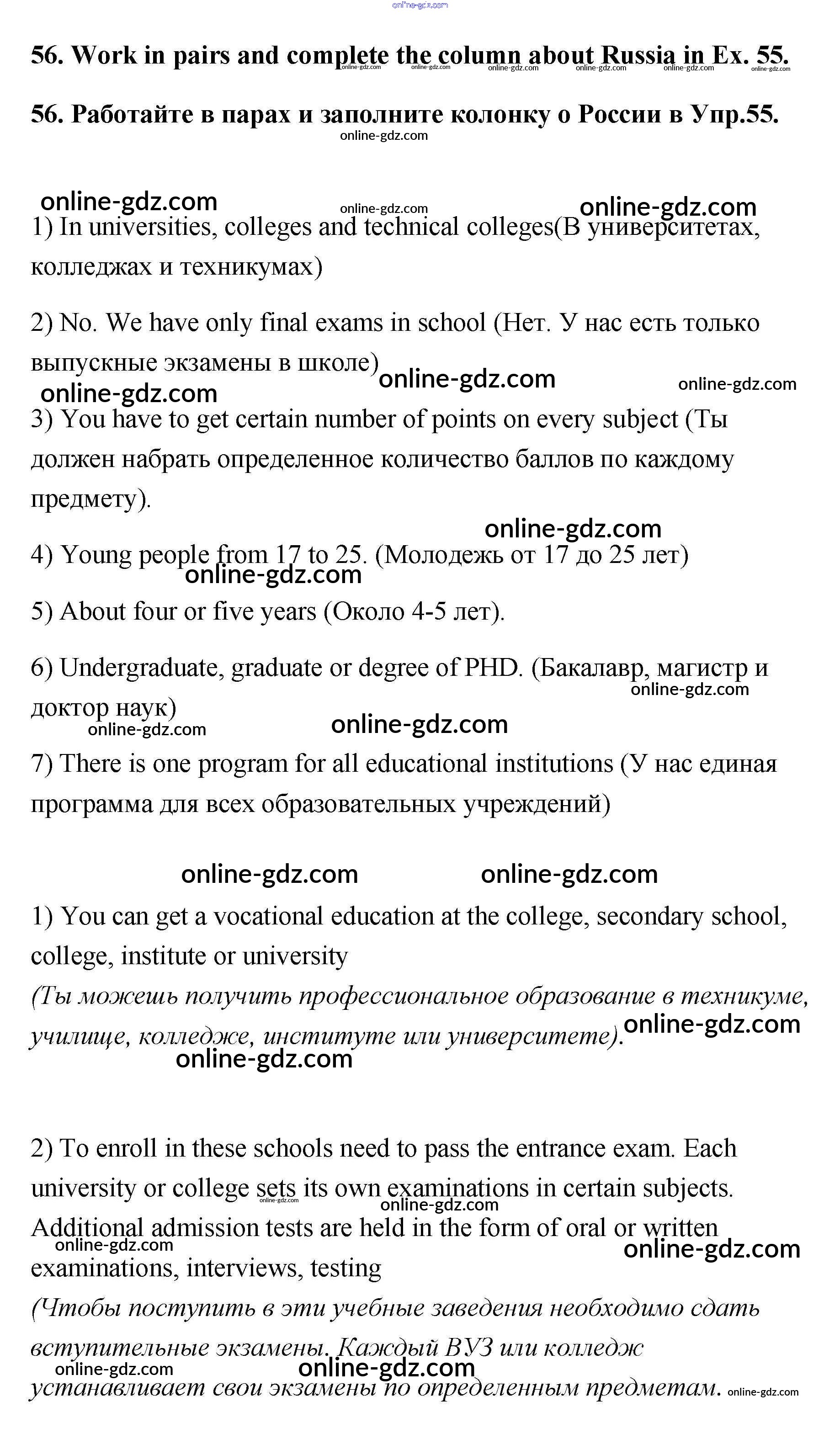 Готовые домашние задания по Английскому языку за 11 класс Учебник Биболетова, Трубанева Enjoy English 2015 - Unit 2 56