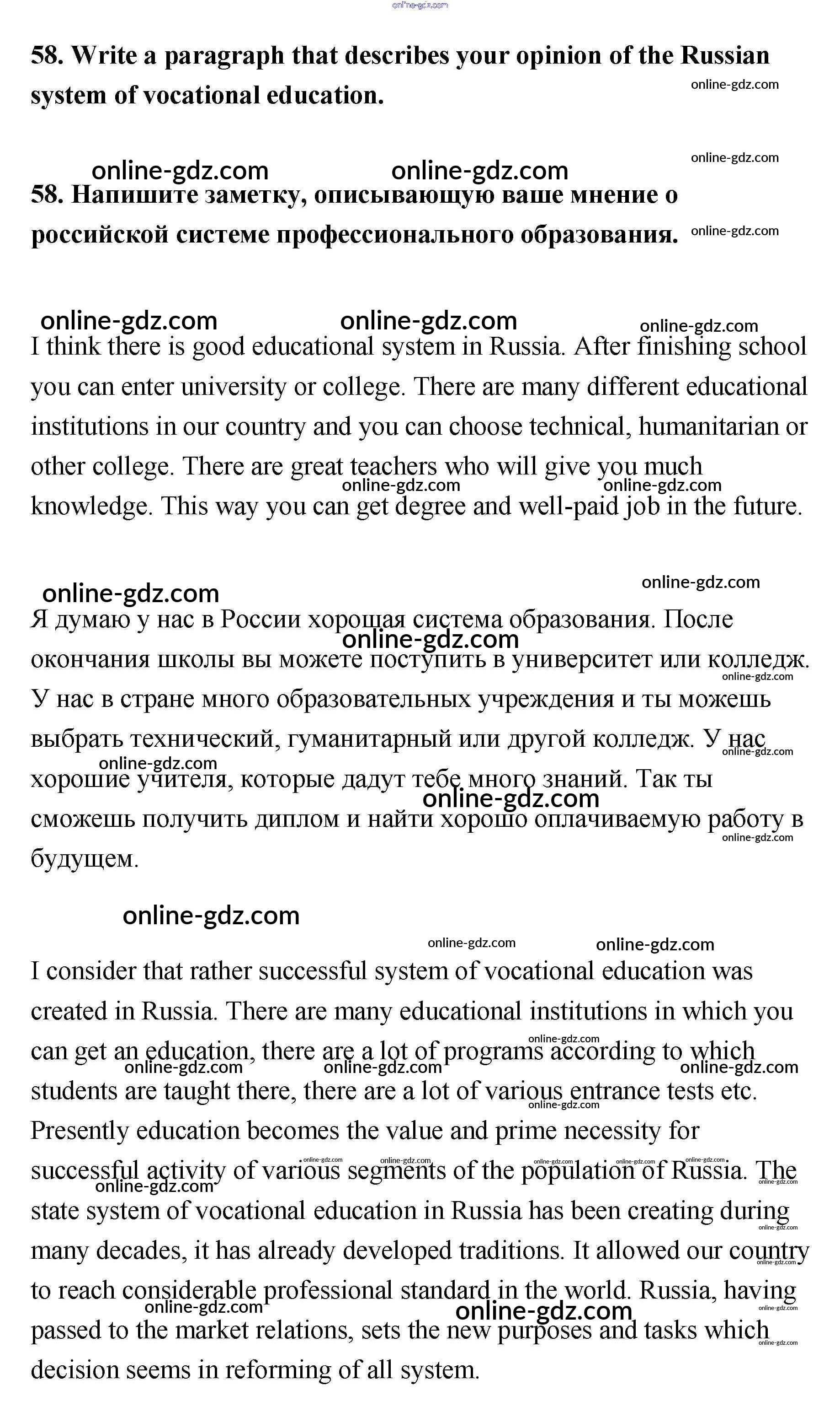 Готовые домашние задания по Английскому языку за 11 класс Учебник Биболетова, Трубанева Enjoy English 2015 - Unit 2 58