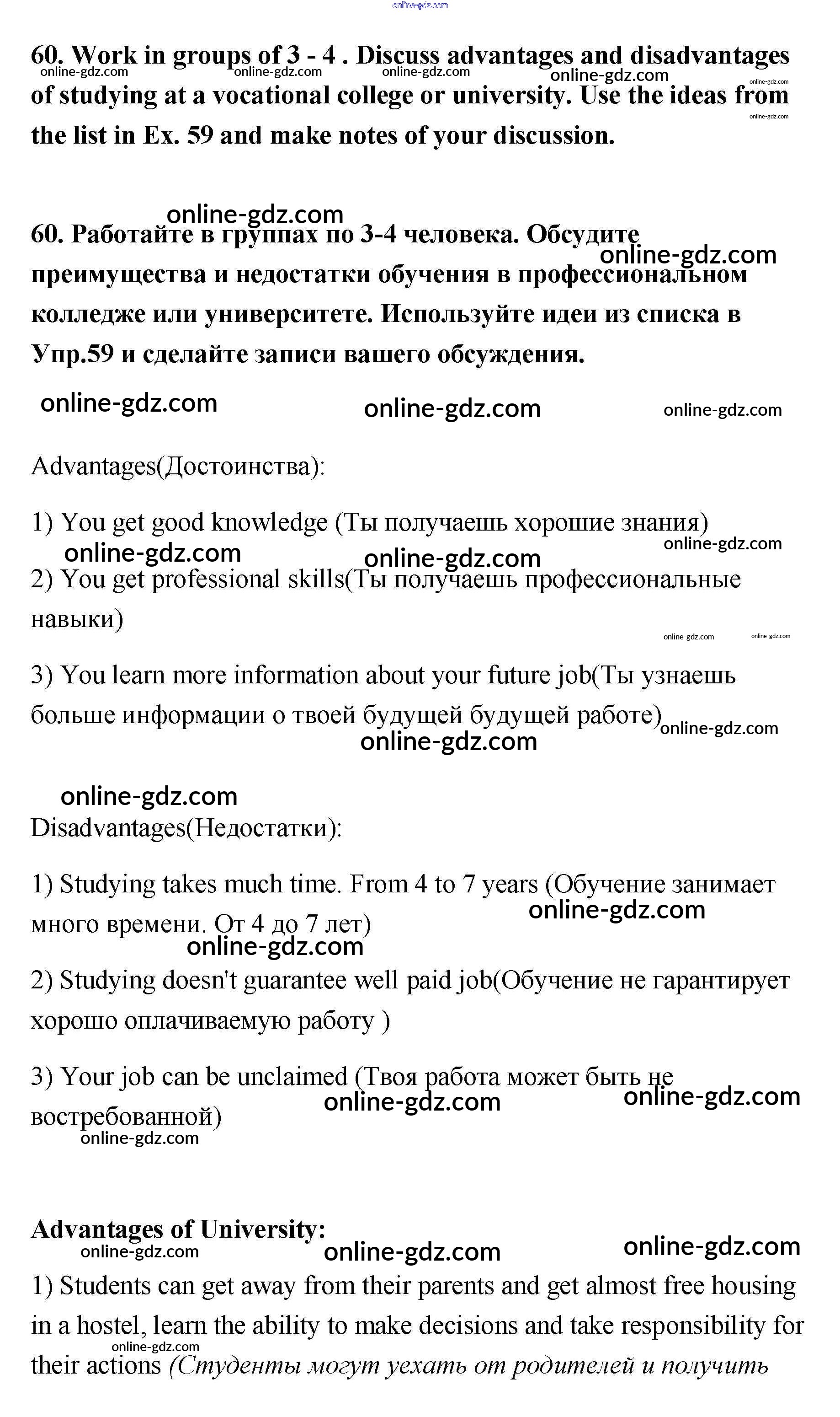 Готовые домашние задания по Английскому языку за 11 класс Учебник Биболетова, Трубанева Enjoy English 2015 - Unit 2 60