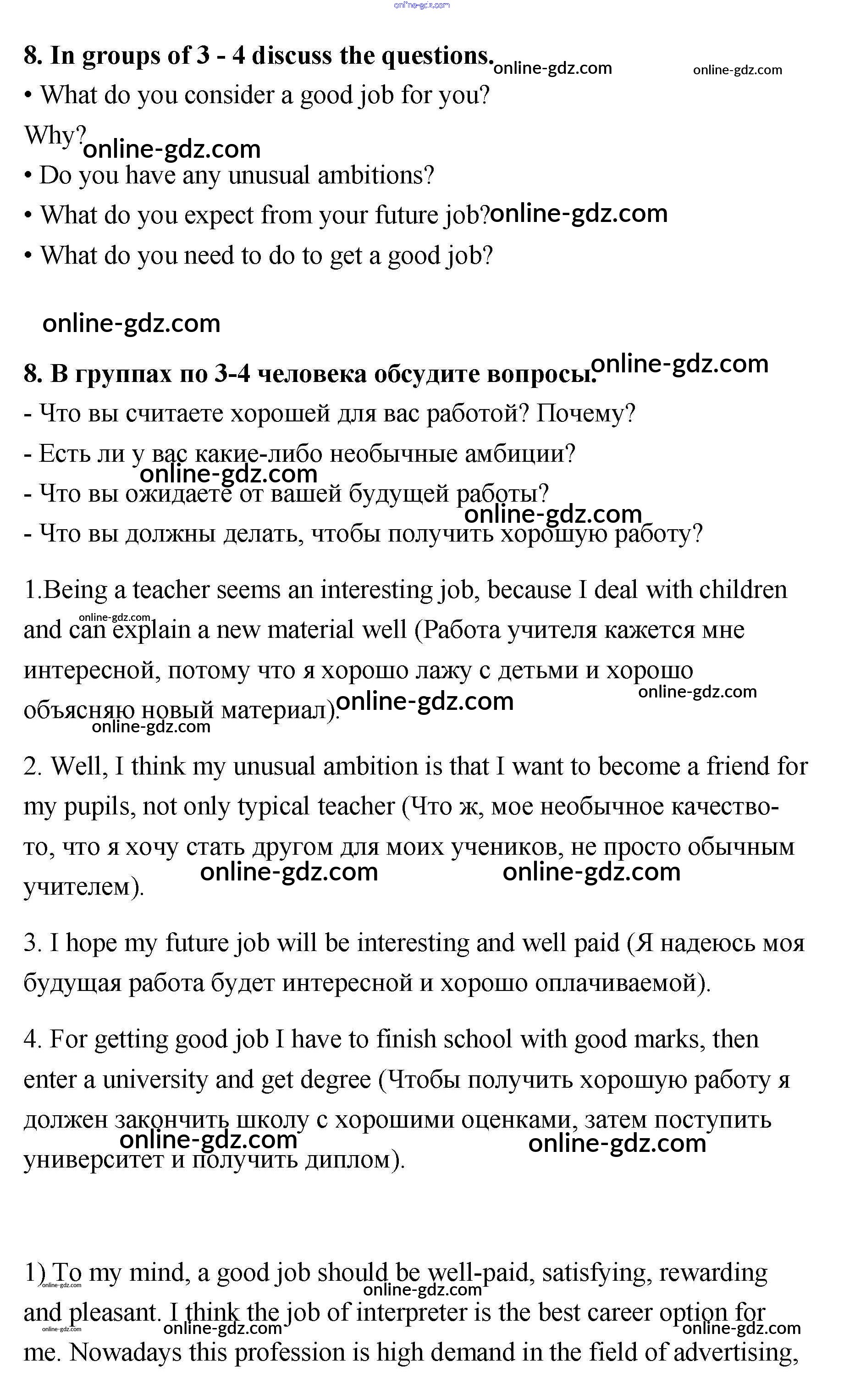 Готовые домашние задания по Английскому языку за 11 класс Учебник Биболетова, Трубанева Enjoy English 2015 - Unit 2 8