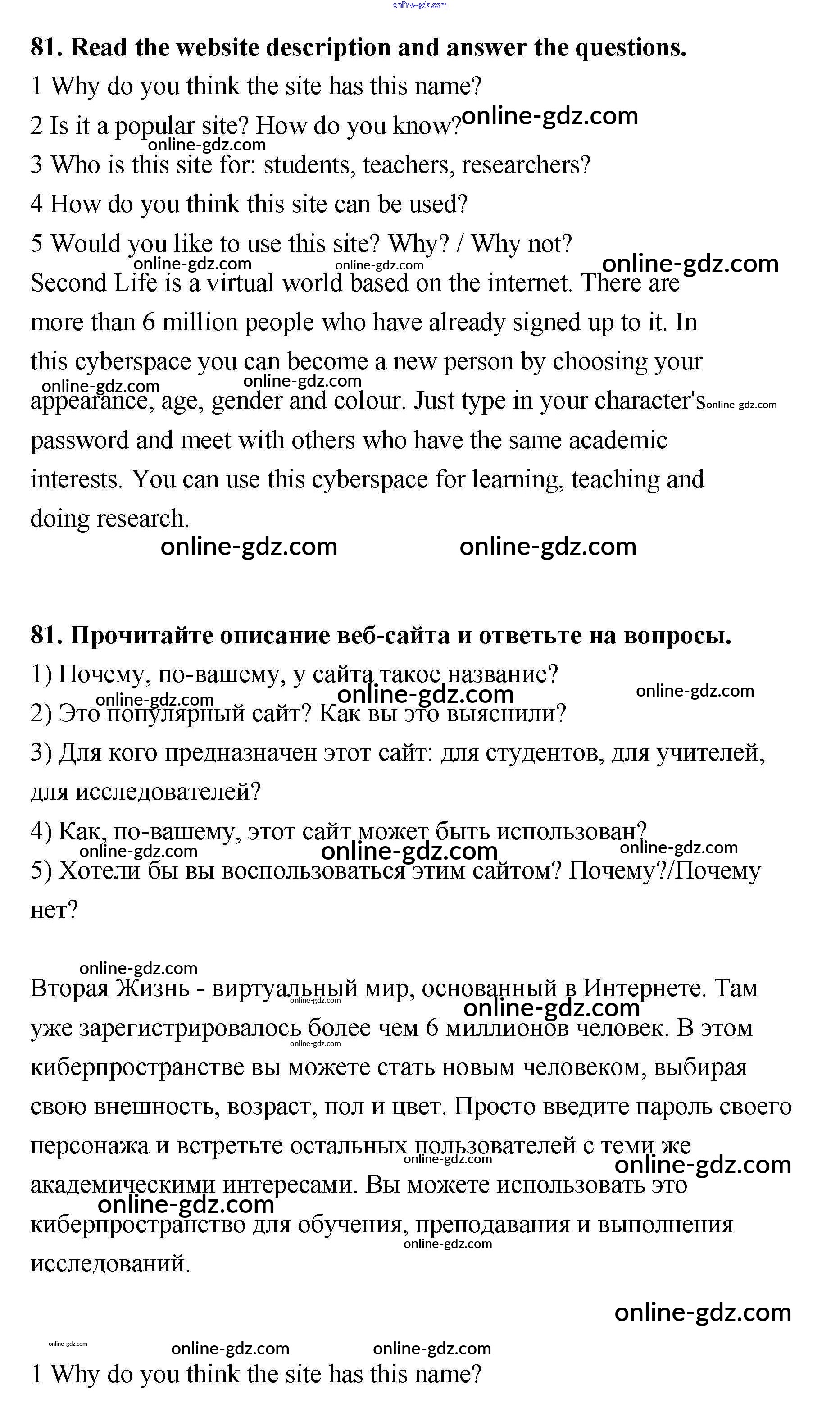 Готовые домашние задания по Английскому языку за 11 класс Учебник Биболетова, Трубанева Enjoy English 2015 - Unit 2 81