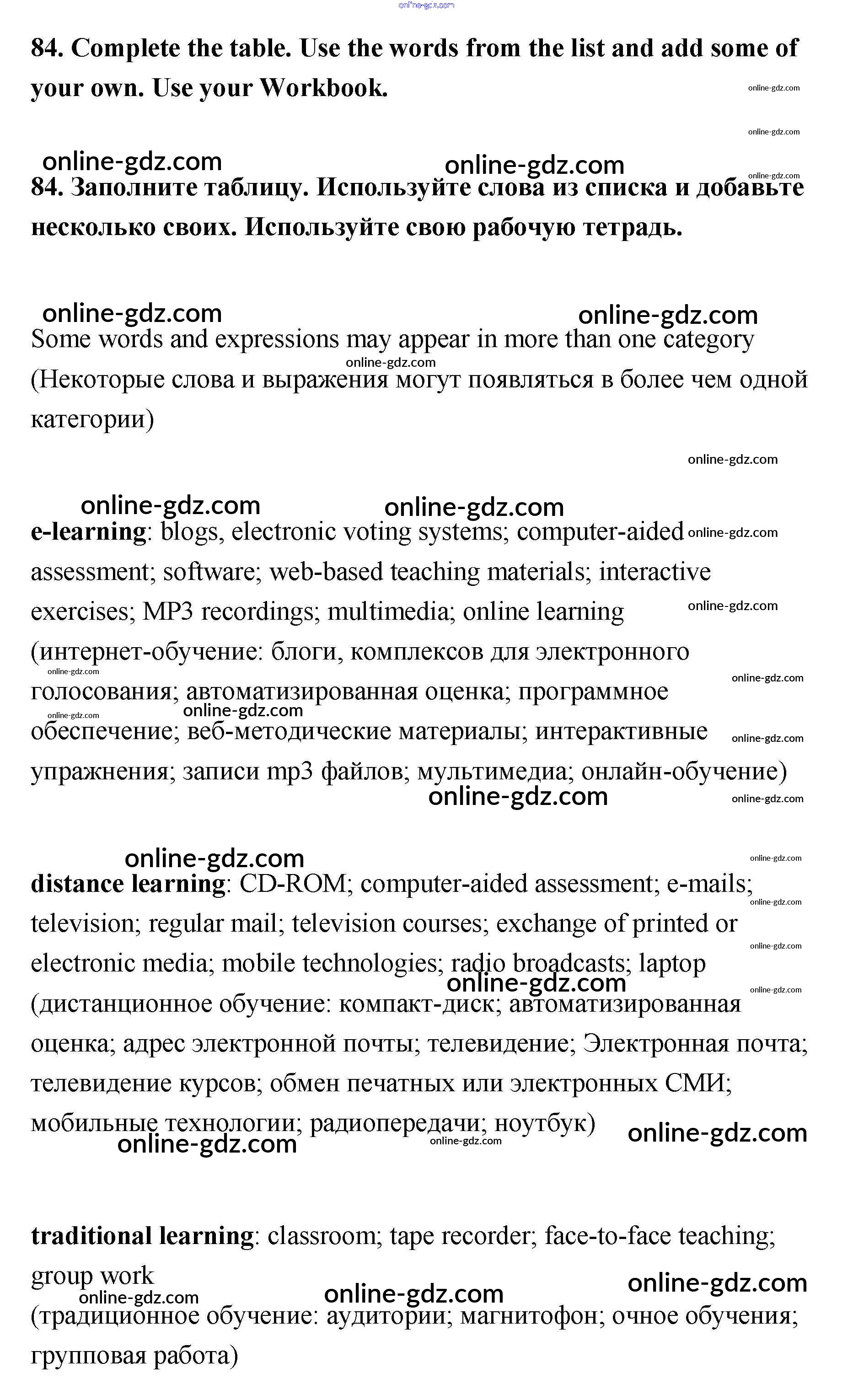 Готовые домашние задания по Английскому языку за 11 класс Учебник Биболетова, Трубанева Enjoy English 2015 - Unit 2 84