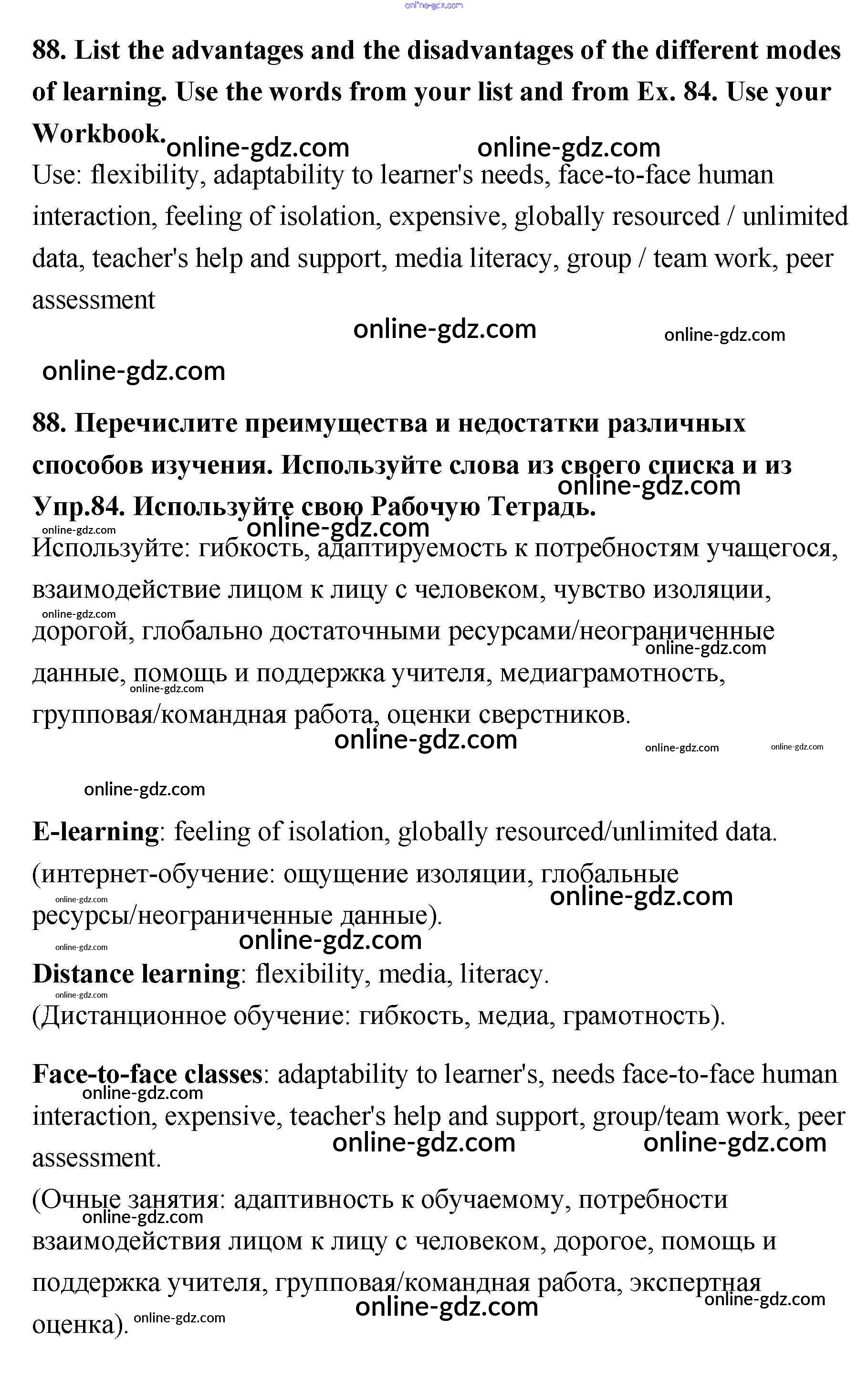 Готовые домашние задания по Английскому языку за 11 класс Учебник Биболетова, Трубанева Enjoy English 2015 - Unit 2 88