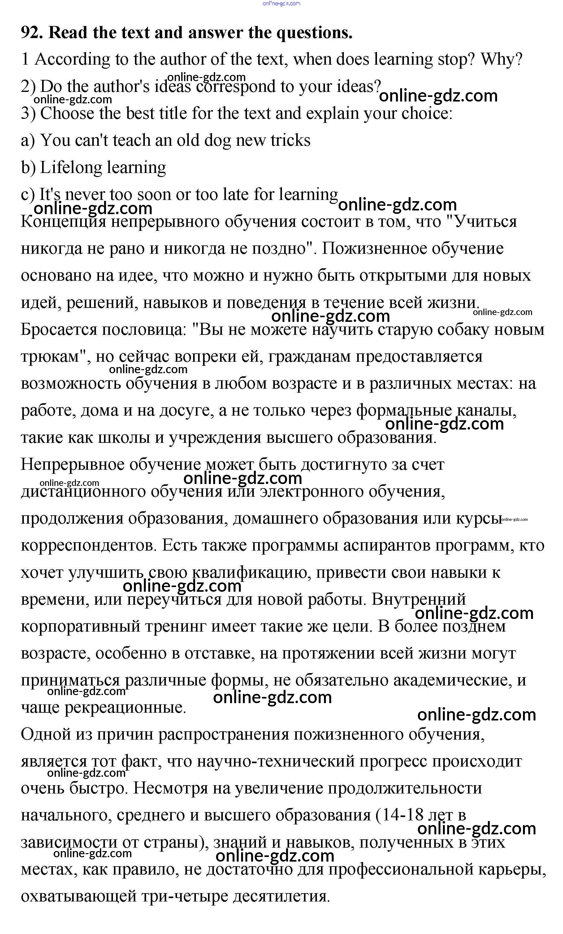 Готовые домашние задания по Английскому языку за 11 класс Учебник Биболетова, Трубанева Enjoy English 2015 - Unit 2 92