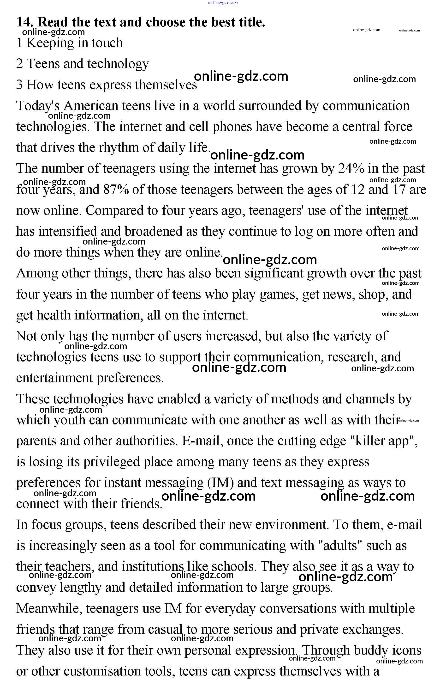Готовые домашние задания по Английскому языку за 11 класс Учебник Биболетова, Трубанева Enjoy English 2015 - Unit 3 14