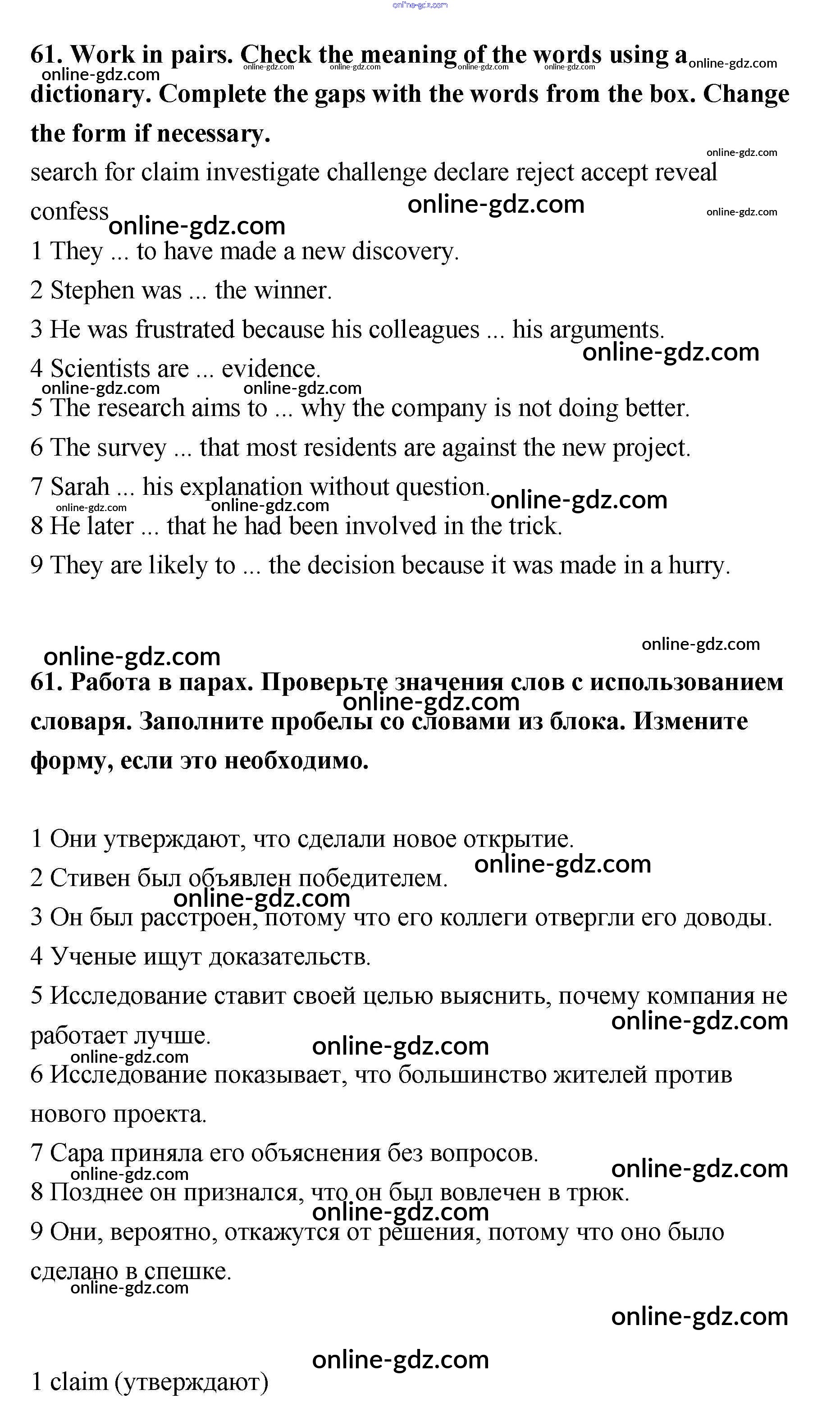 Готовые домашние задания по Английскому языку за 11 класс Учебник Биболетова, Трубанева Enjoy English 2015 - Unit 3 61