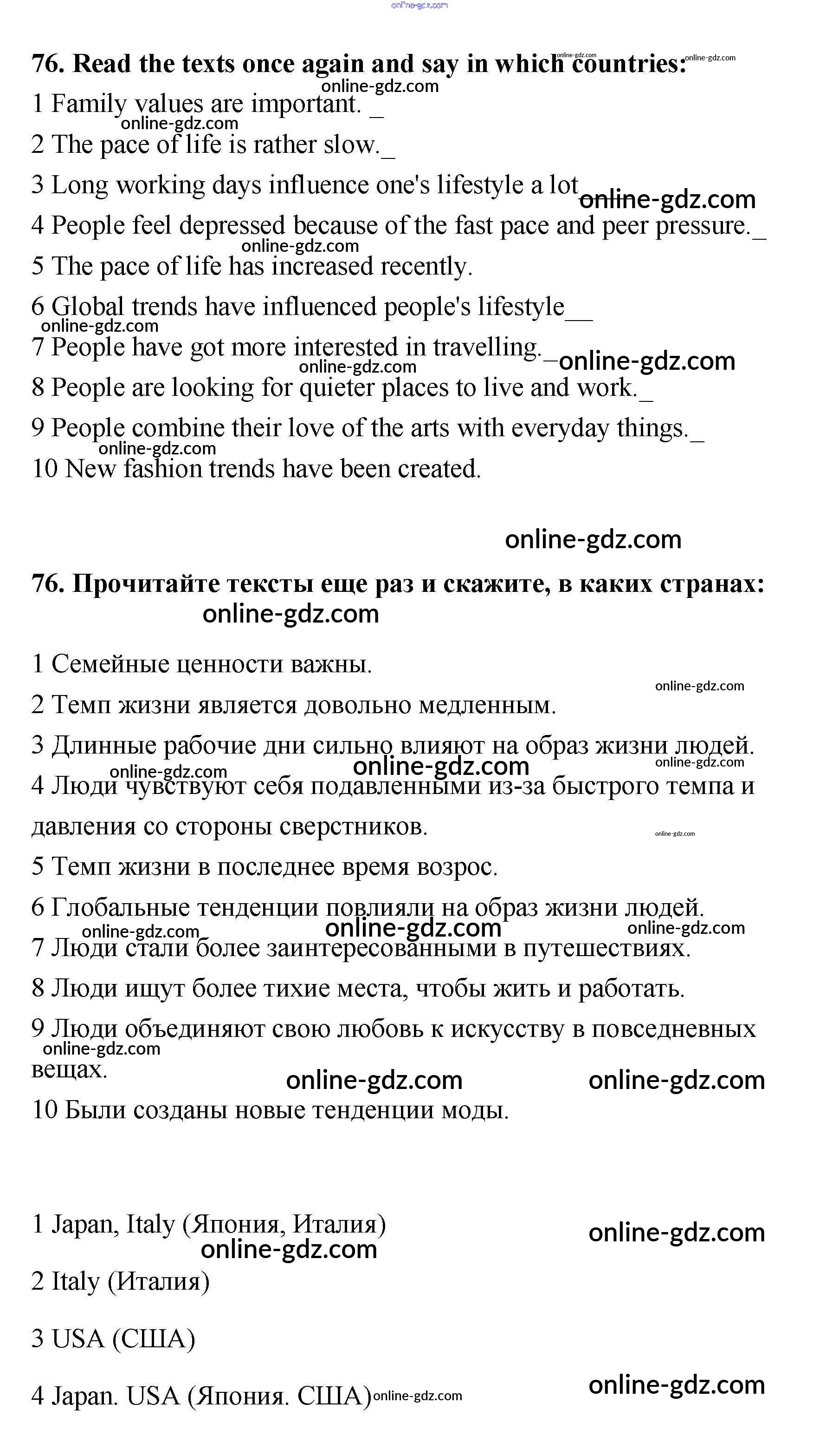 Готовые домашние задания по Английскому языку за 11 класс Учебник Биболетова, Трубанева Enjoy English 2015 - Unit 4 76