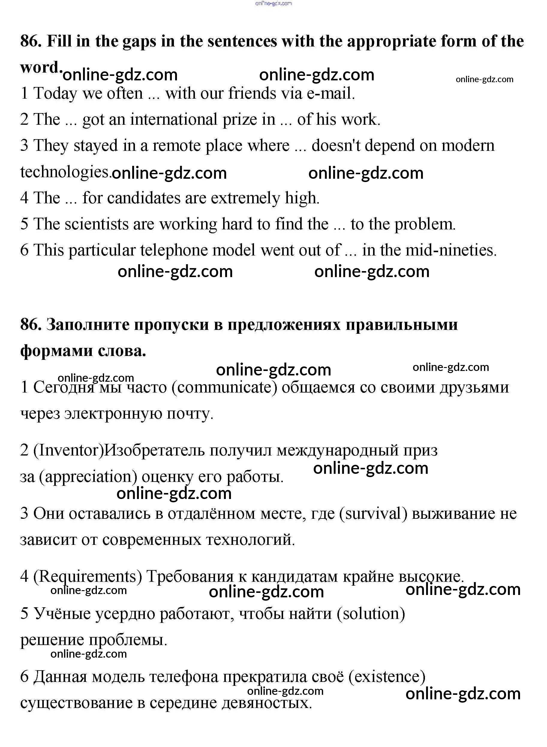 Готовые домашние задания по Английскому языку за 11 класс Учебник Биболетова, Трубанева Enjoy English 2015 - Unit 4 86