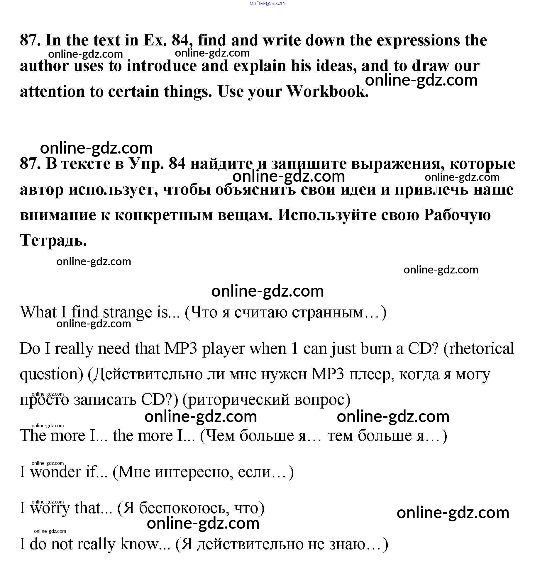 Готовые домашние задания по Английскому языку за 11 класс Учебник Биболетова, Трубанева Enjoy English 2015 - Unit 4 87