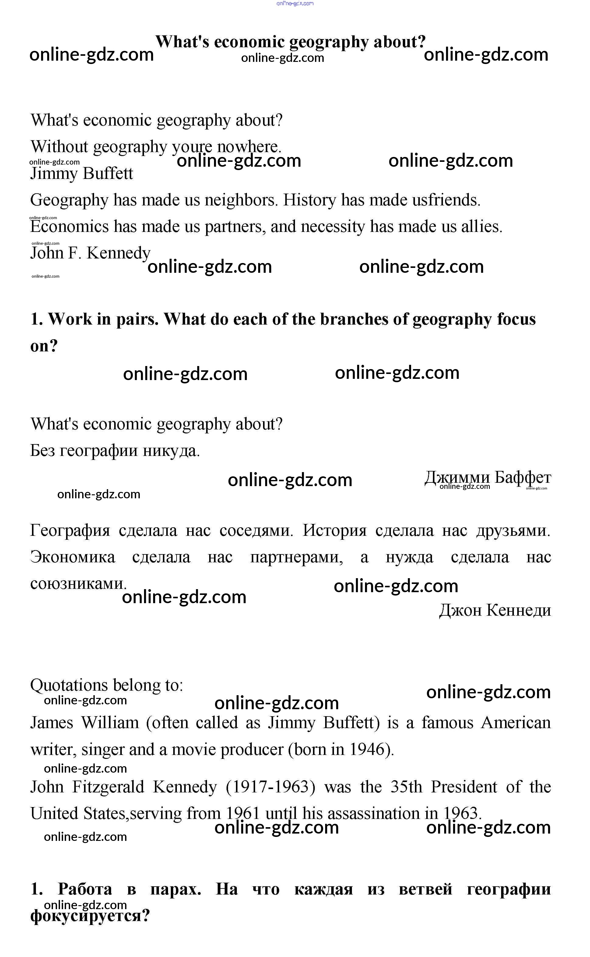Готовые домашние задания по Английскому языку за 11 класс Учебник Биболетова, Трубанева Enjoy English 2015 - What's economic geography about? School English 1