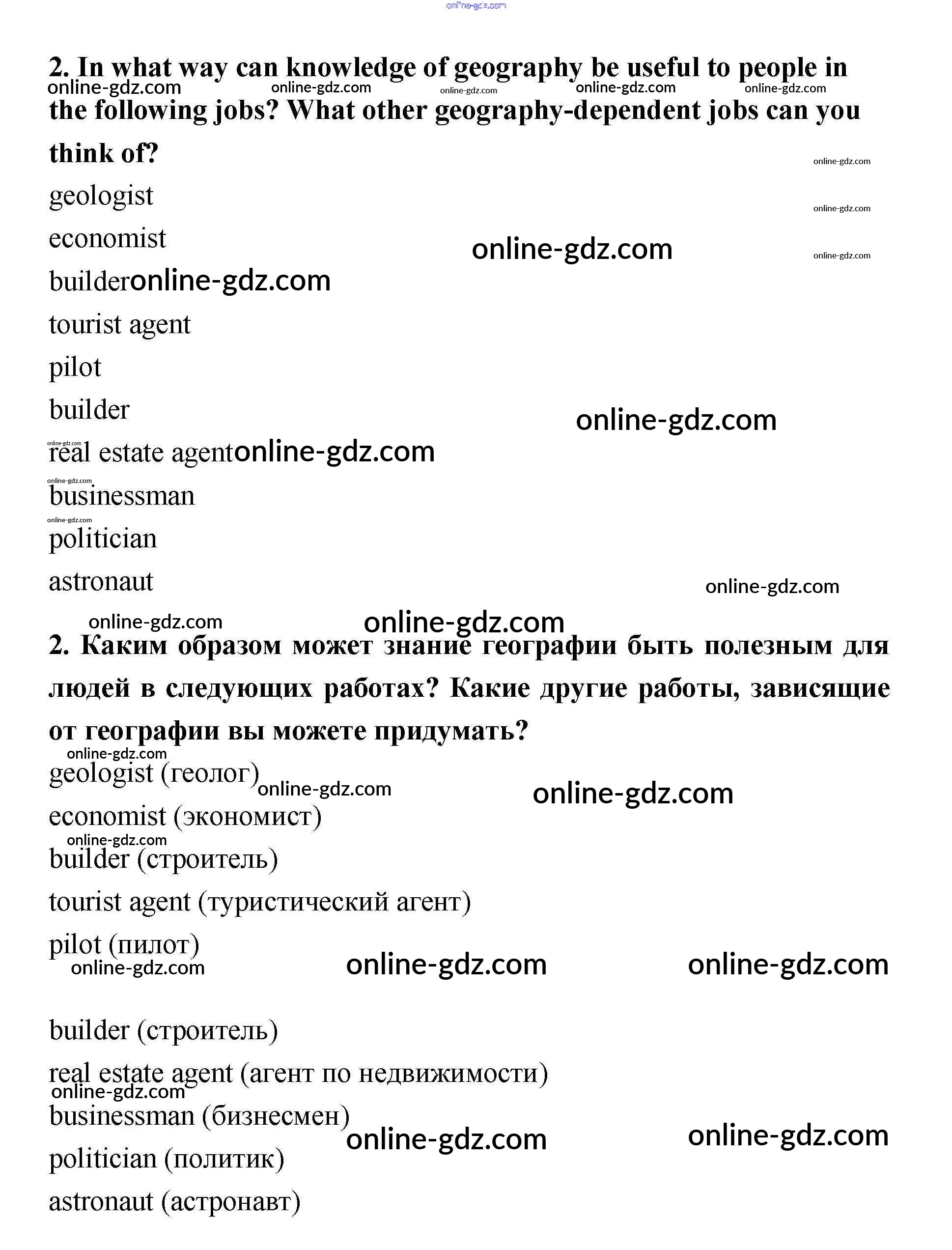 Готовые домашние задания по Английскому языку за 11 класс Учебник Биболетова, Трубанева Enjoy English 2015 - What's economic geography about? School English 2