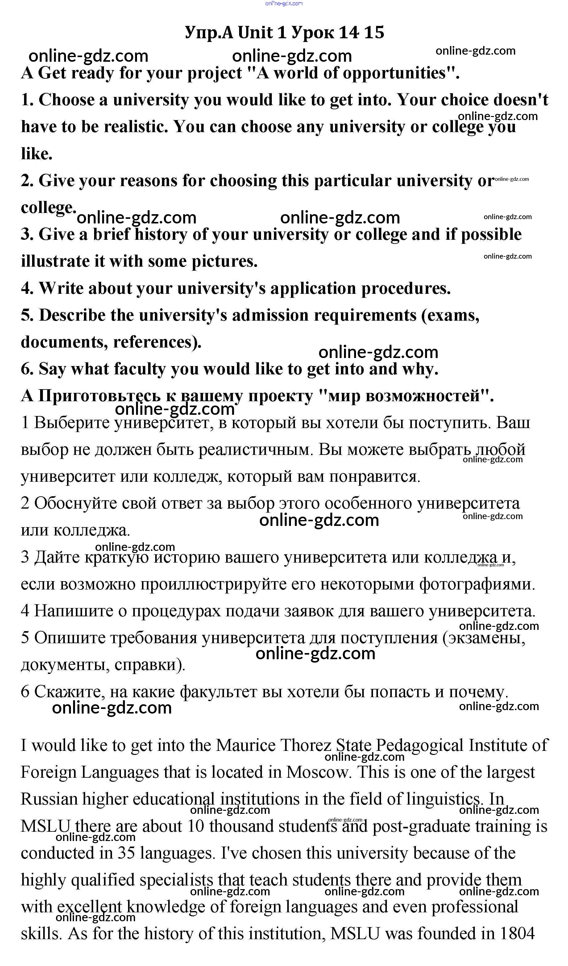 Готовые домашние задания по Английскому языку за 11 класс Учебник Кауфман Happy English 2014 - Lesson 14-15 Unit 1 A