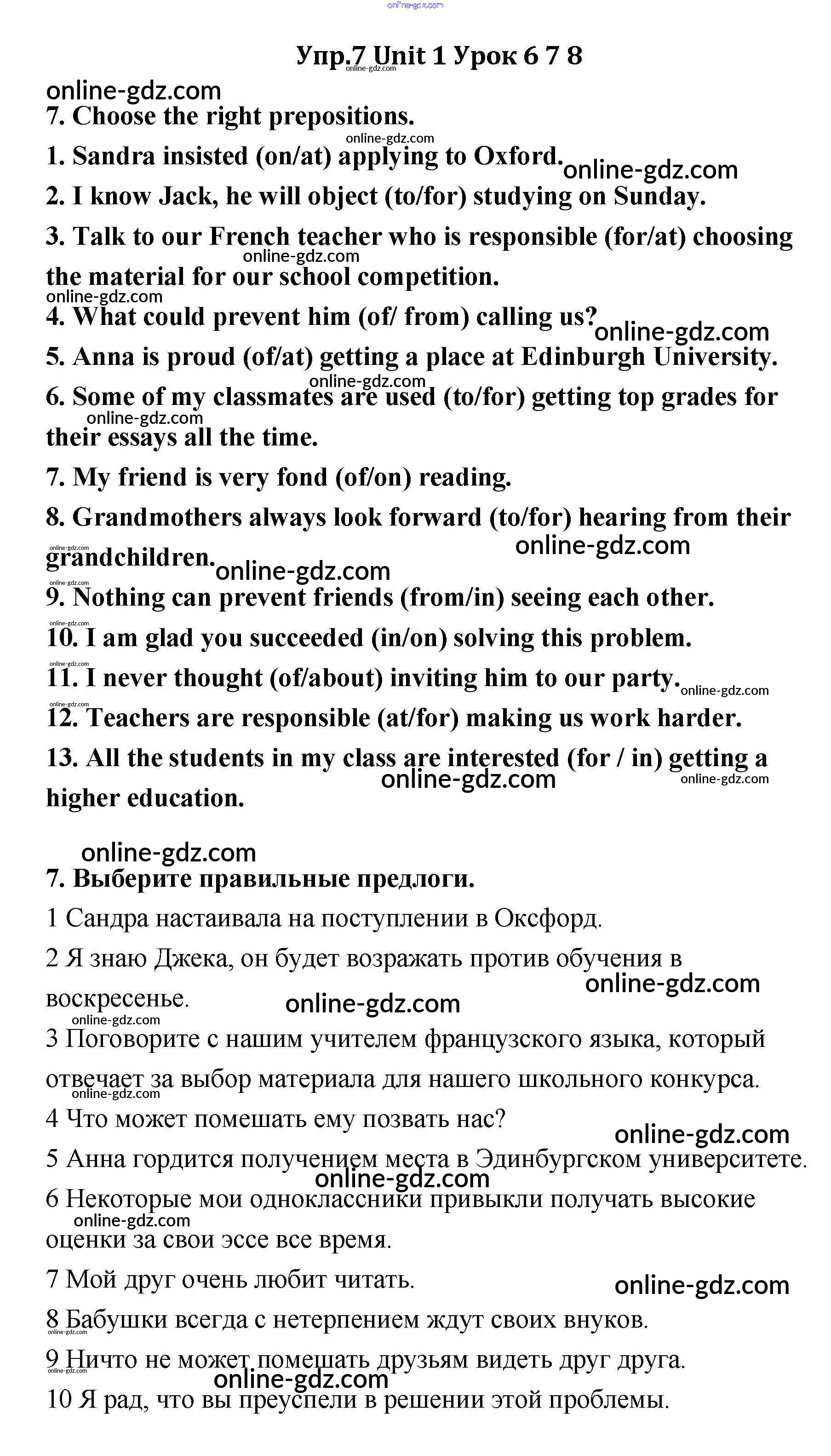 Готовые домашние задания по Английскому языку за 11 класс Учебник Кауфман Happy English 2014 - Lesson 6-8 Unit 1 7
