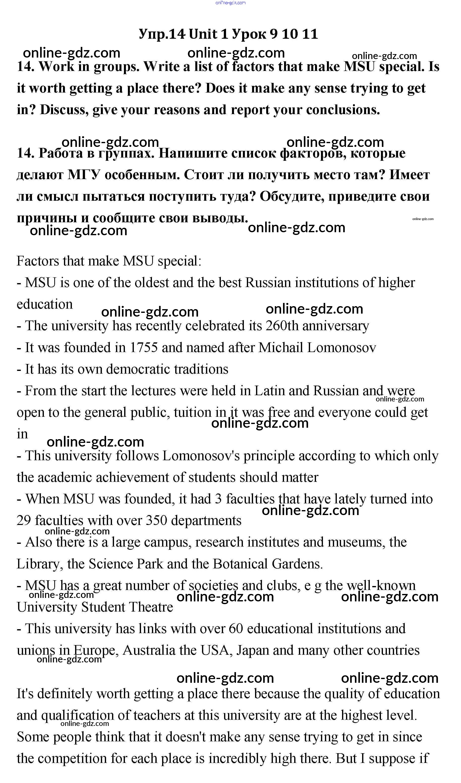 Готовые домашние задания по Английскому языку за 11 класс Учебник Кауфман Happy English 2014 - Lesson 9-11 Unit 1 14
