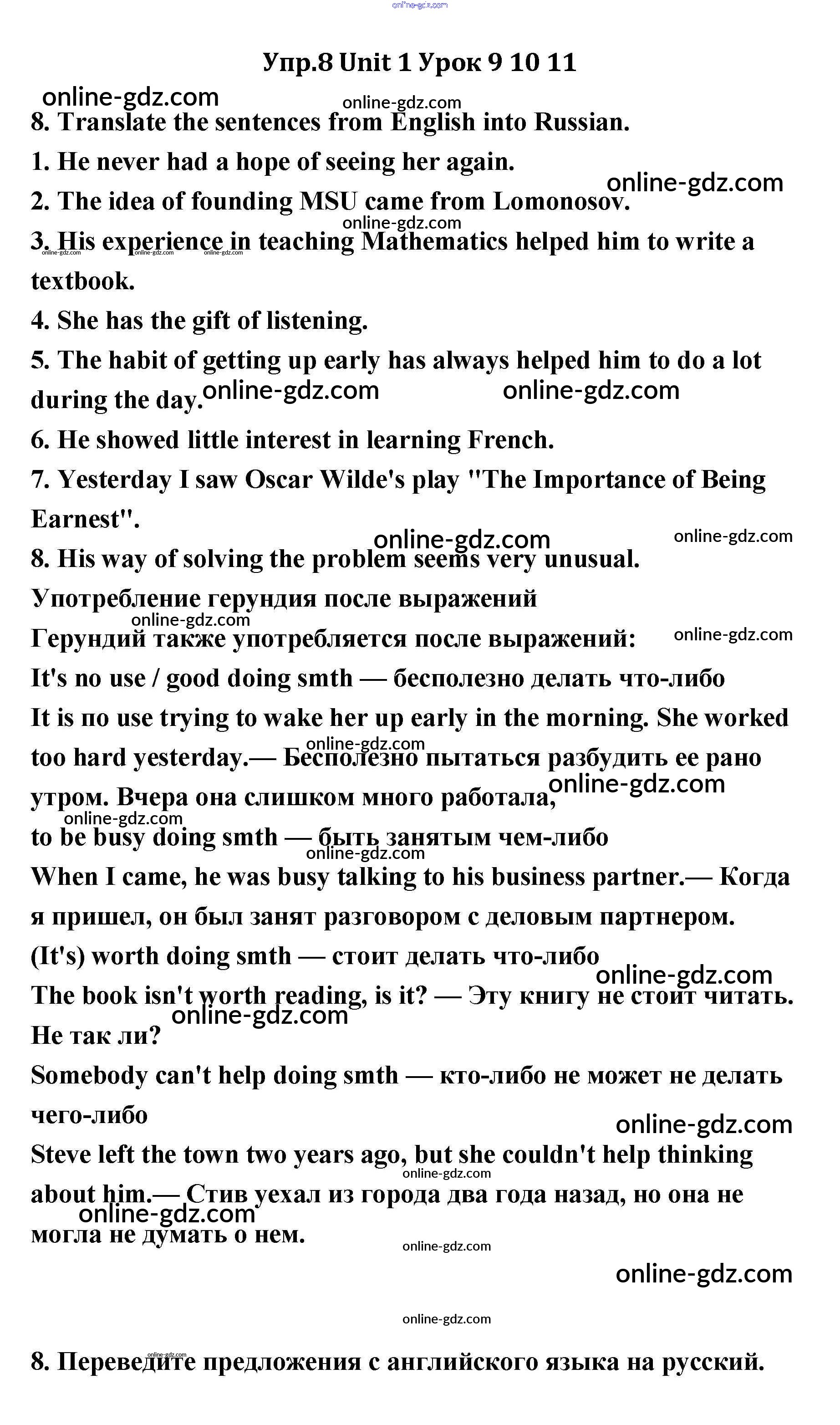 Готовые домашние задания по Английскому языку за 11 класс Учебник Кауфман Happy English 2014 - Lesson 9-11 Unit 1 8