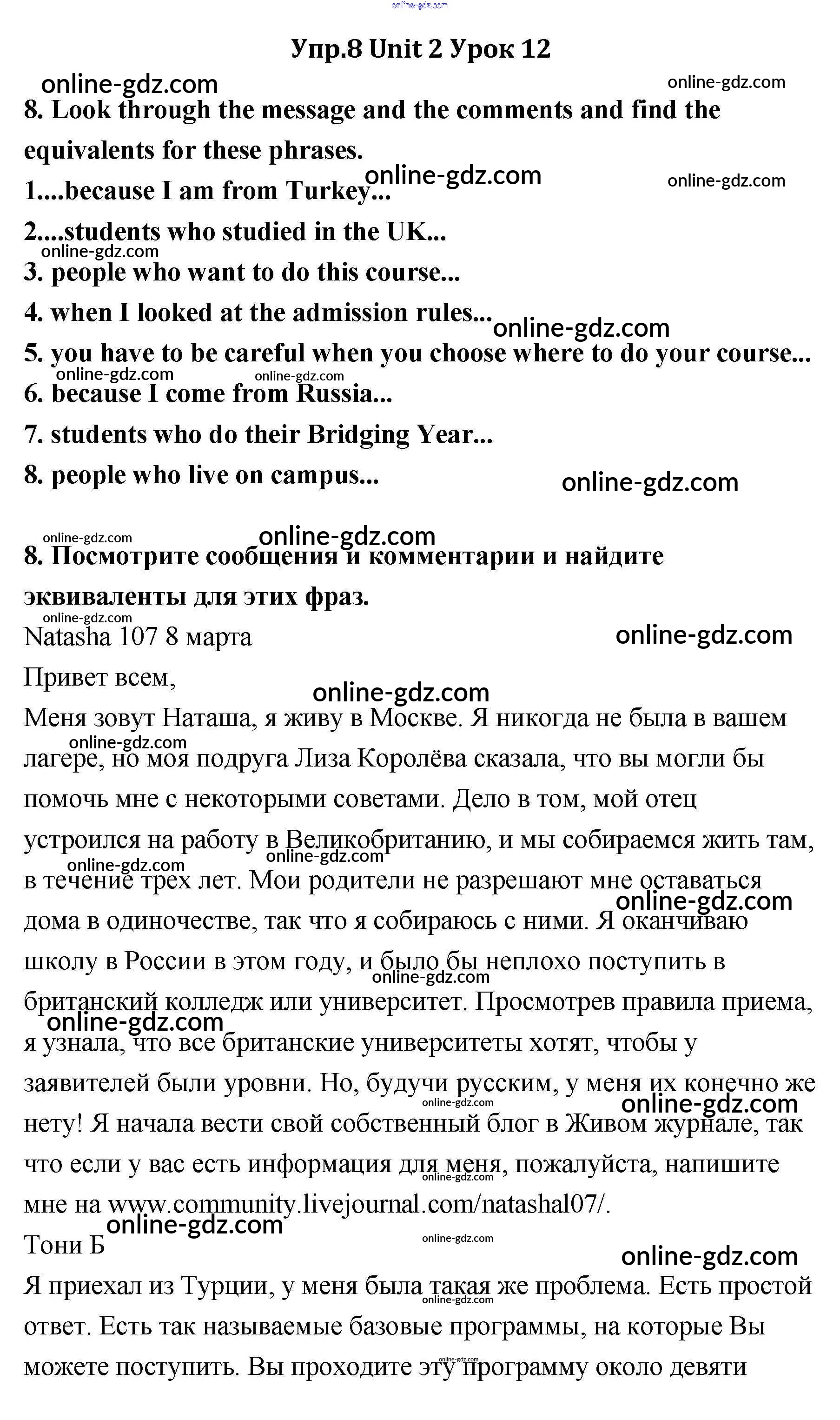 Готовые домашние задания по Английскому языку за 11 класс Учебник Кауфман Happy English 2014 - Lesson 1-2 Unit 2 8