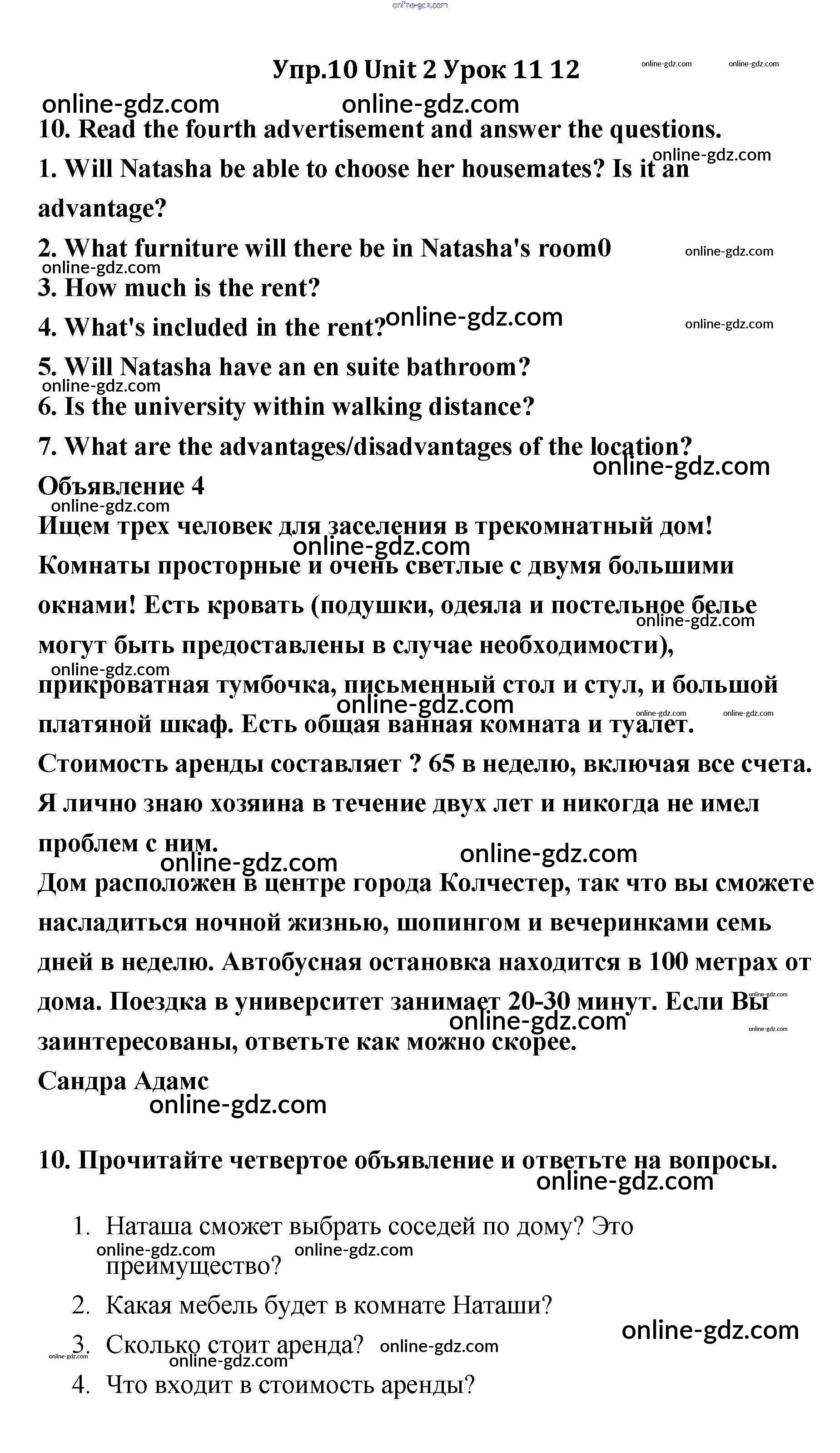 Готовые домашние задания по Английскому языку за 11 класс Учебник Кауфман Happy English 2014 - Lesson 11-12 Unit 2 10