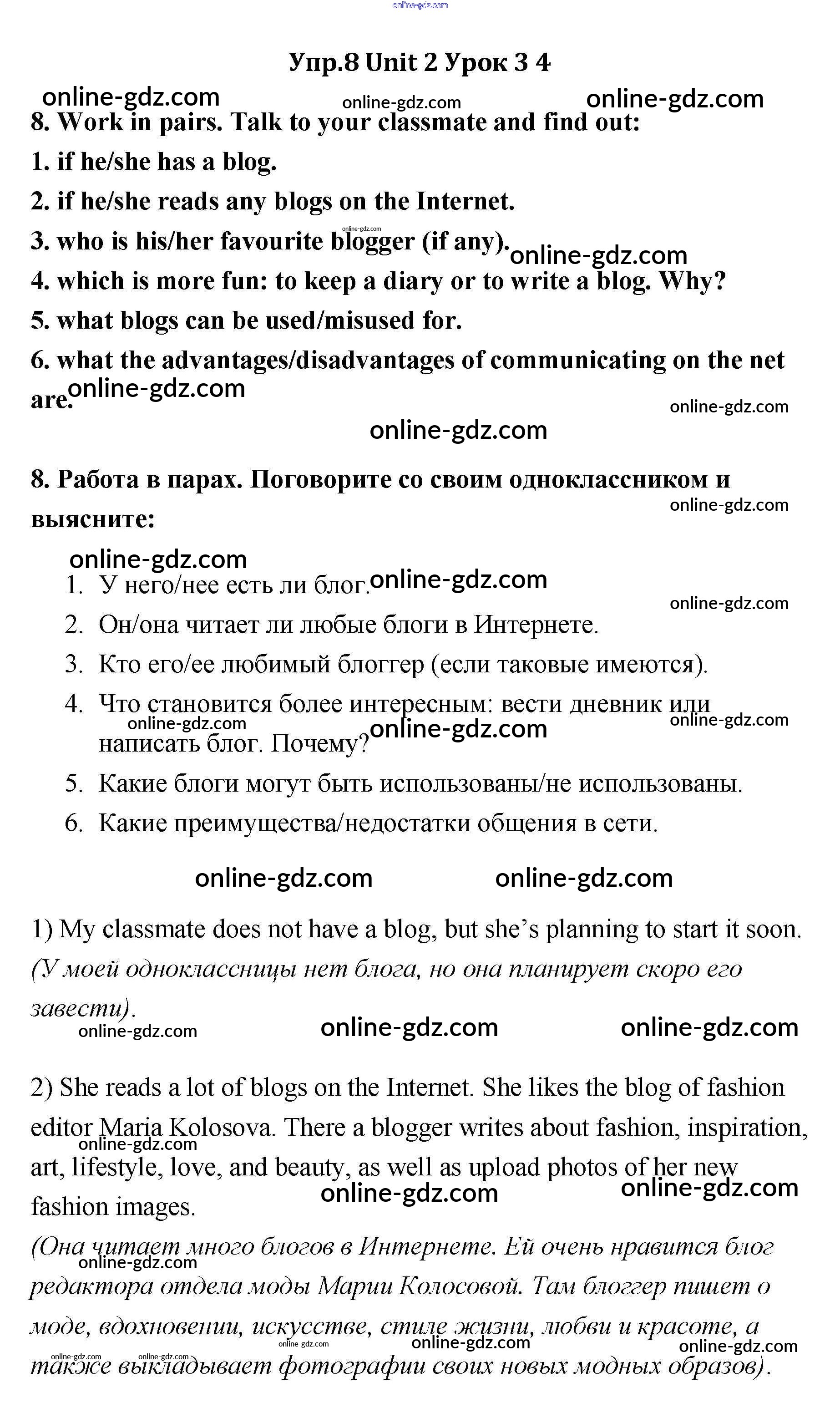 Готовые домашние задания по Английскому языку за 11 класс Учебник Кауфман Happy English 2014 - Lesson 3-4 Unit 2 8