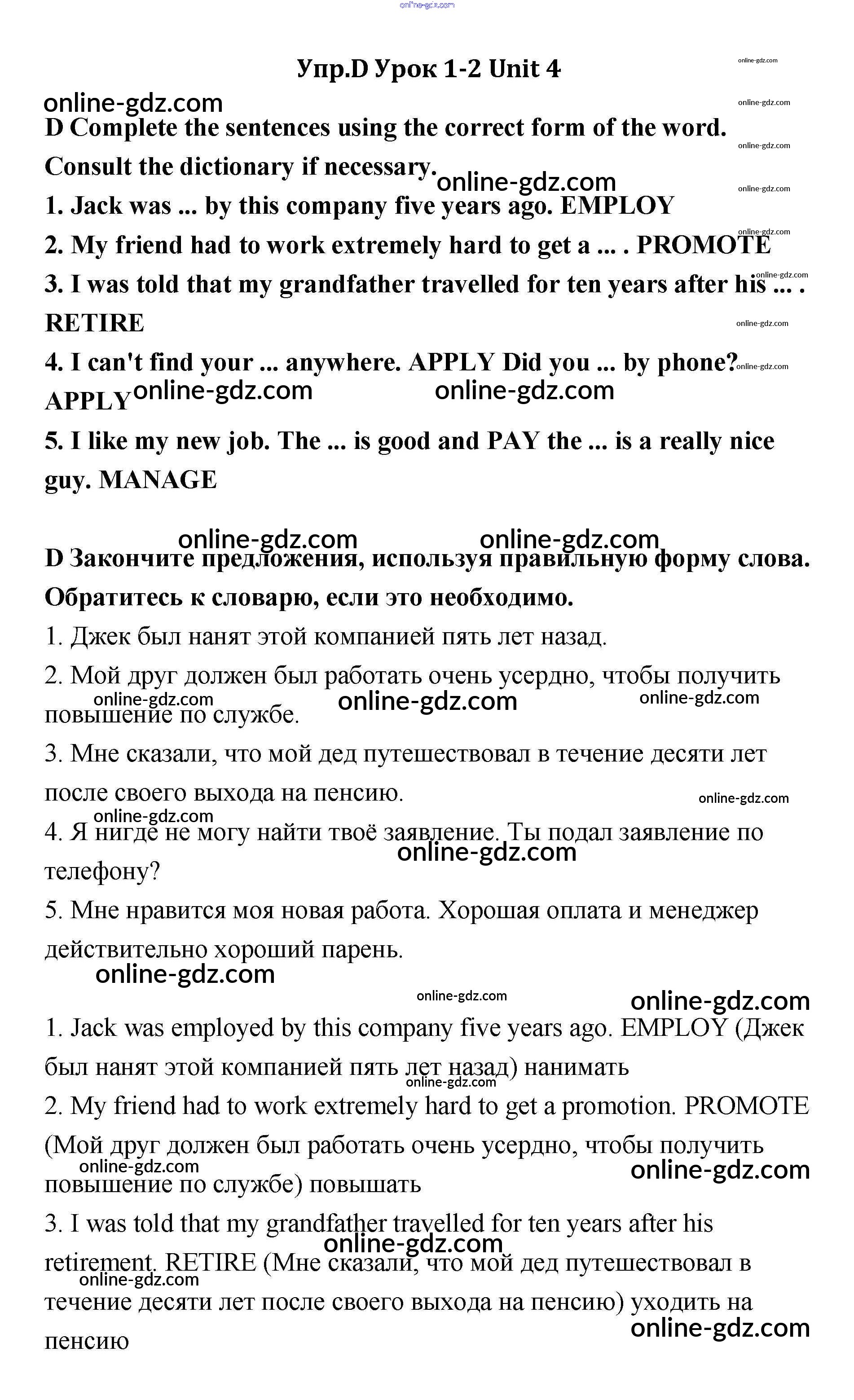 Готовые домашние задания по Английскому языку за 11 класс Учебник Кауфман Happy English 2014 - Lesson 1-2 Unit 4 D