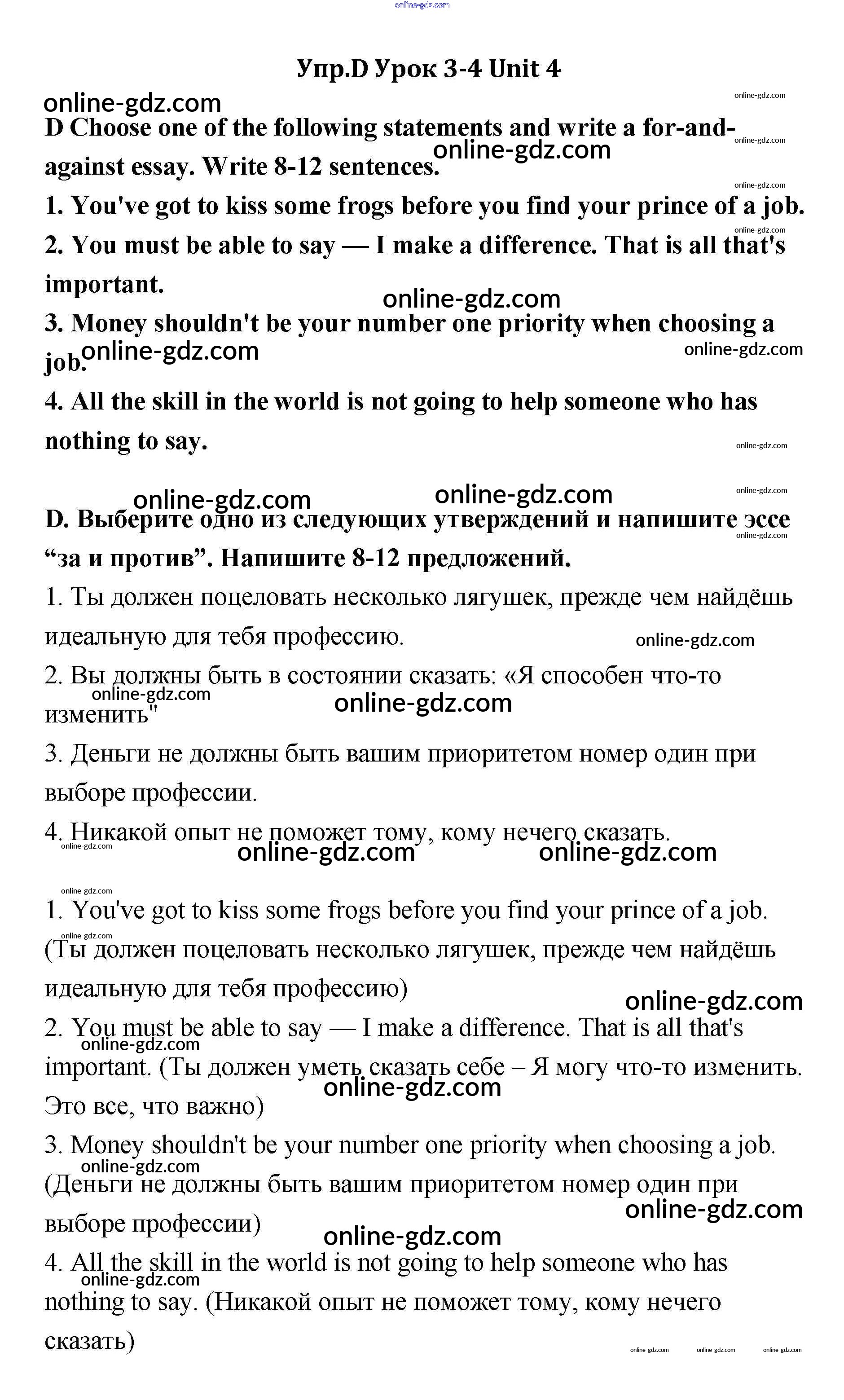 Готовые домашние задания по Английскому языку за 11 класс Учебник Кауфман Happy English 2014 - Lesson 3-4 Unit 4 D